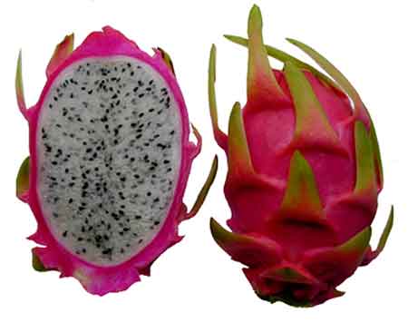 Ale wracając do reszty dzisiejszych owoców: pierwszy moją uwagę przykuł smoczy owoc (dragon fruit), śliczny i różowy. Pierwszy raz chyba widziałam go „na żywo”.