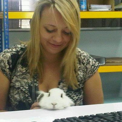 Ps2 Wspomniałam już, że mamy królika w biurze? Znajda, zabrany przez Jihę z ruchliwej drogi. Nazwaliśmy ją (bo to dziewczynka) Sunshine. Jest biała i puszysta, ma brązowe oczy i jest bardzo rozpieszczona – je tylko, jeśli się ją karmi z ręki, sama nie ruszy jedzenia z miski. Preferuje marchewkę i krakersy. I lubi towarzystko ludzi. Jest z nami w biurze od wczoraj, radośnie skacząc przez kable komputerowe.