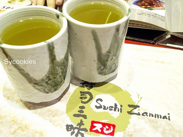 Do picia każdy dostał spory kubek zielonej herbaty (niezbyt mocna, ale zajeżdżająca ziołami), który był kilkakrotnie dopełniany przez krążące po sali kelnerki z czajniczkami z herbatą.