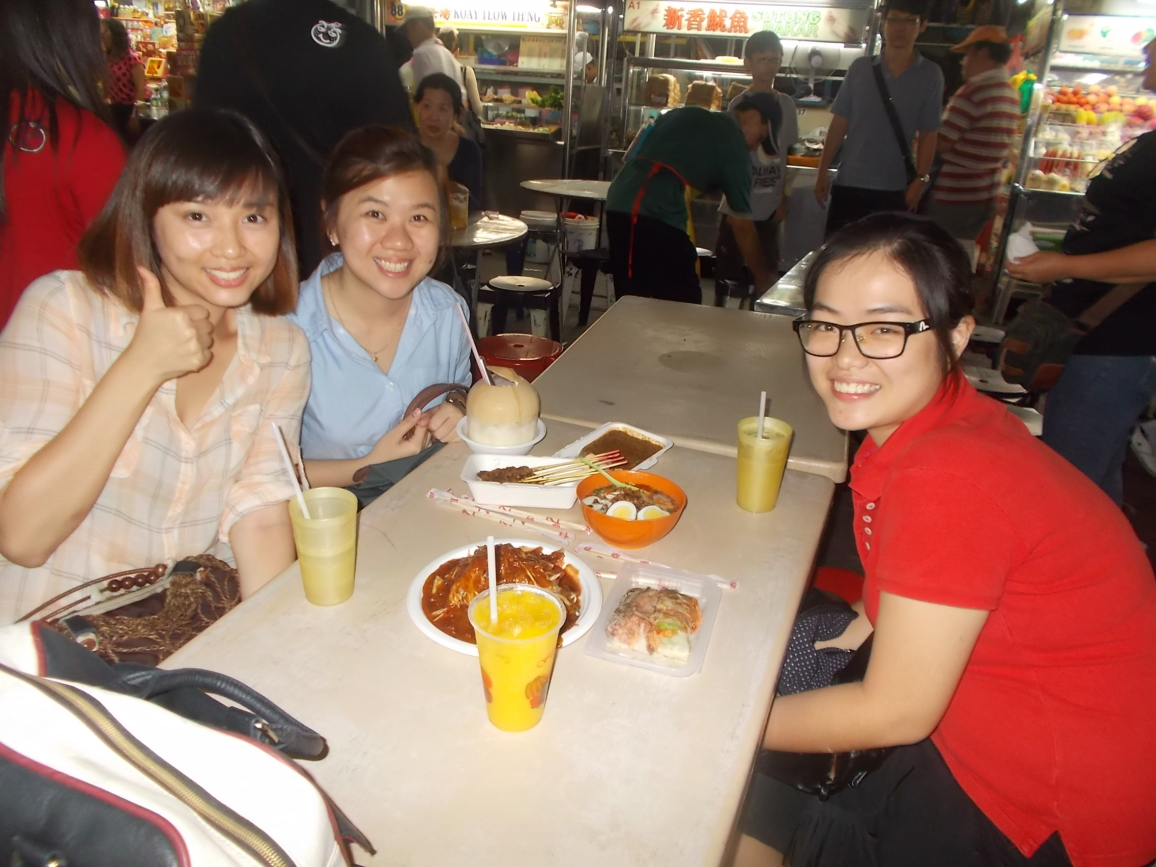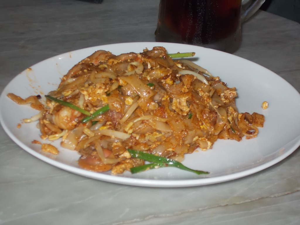 Po odebraniu z dworca przez Peisan i jej koleżankę Joan pojechałyśmy do ulicznej knajpki spróbować klasycznego dania z Penangu – Char Kuey Teow. Są to szerokie kluski ryżowe podawane z krewetkami, tofu, kiełkami i warzywami z sosie sojowym. Bardzo smaczne!