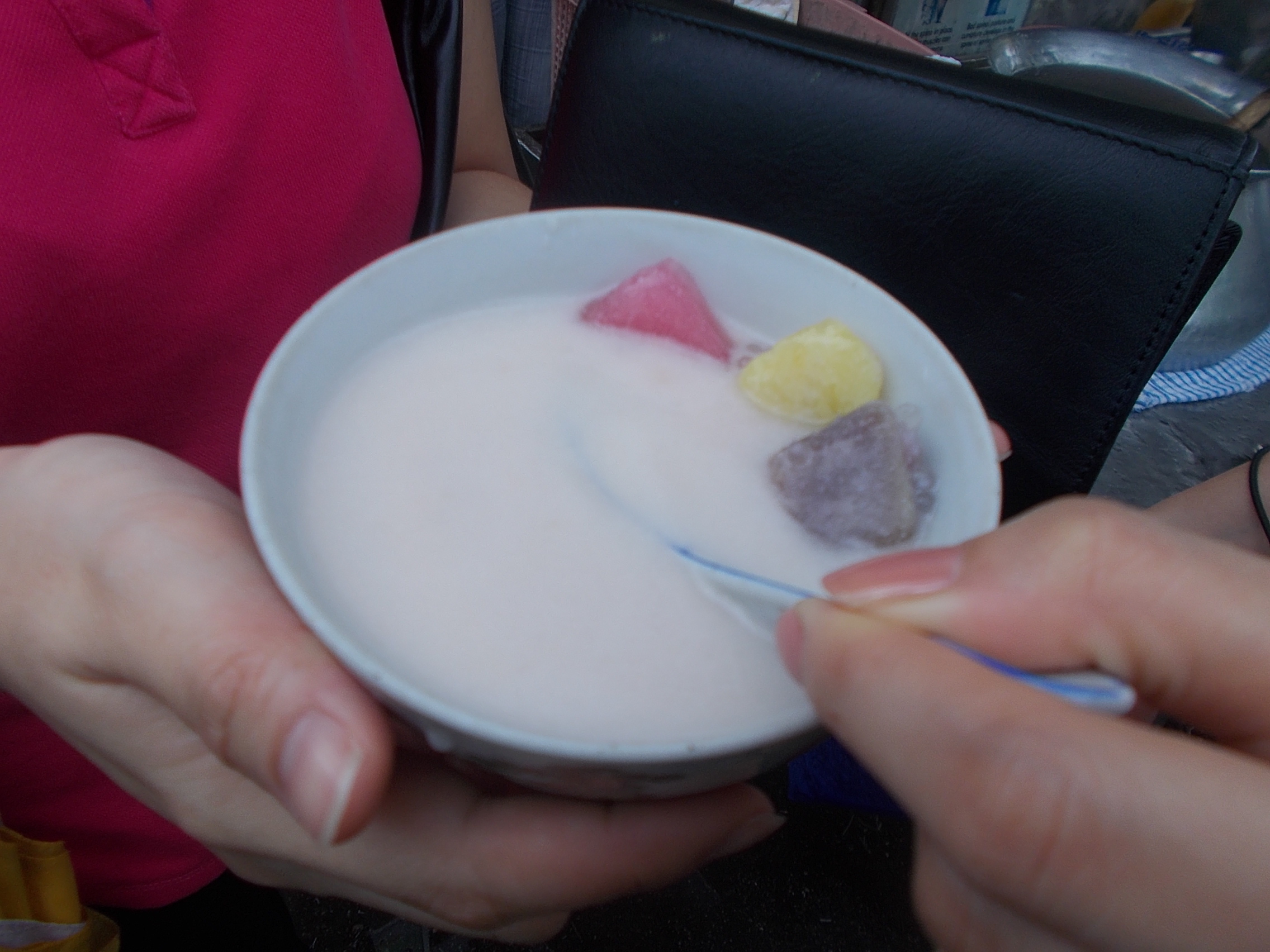 Po drodze skosztowałyśmy jeszcze zupy kokosowej z kuleczkami sogo i kawałkami słodkich ziemniaków i żelków. Bardzo aromatyczne, pachnące kokosem danie!
