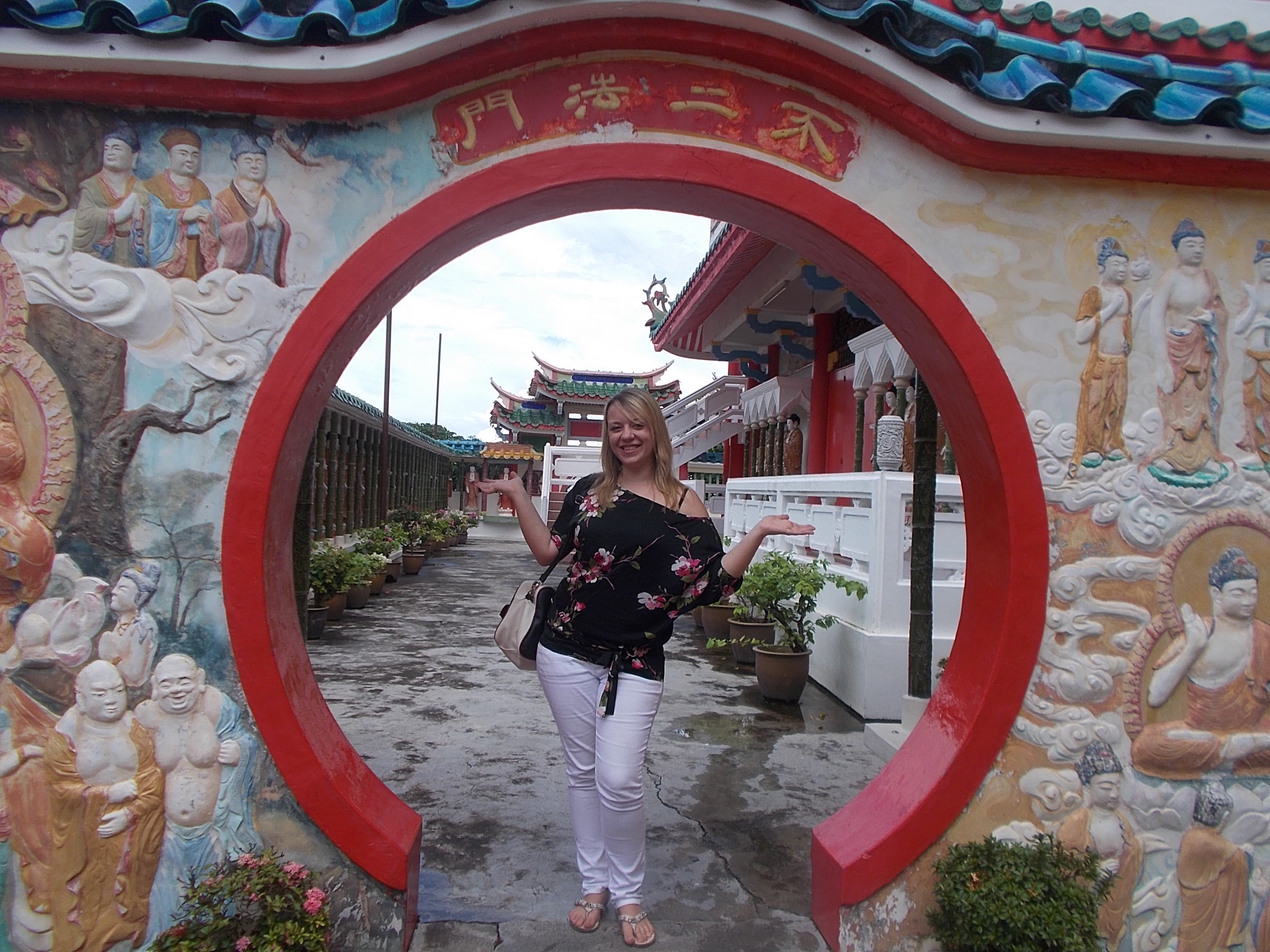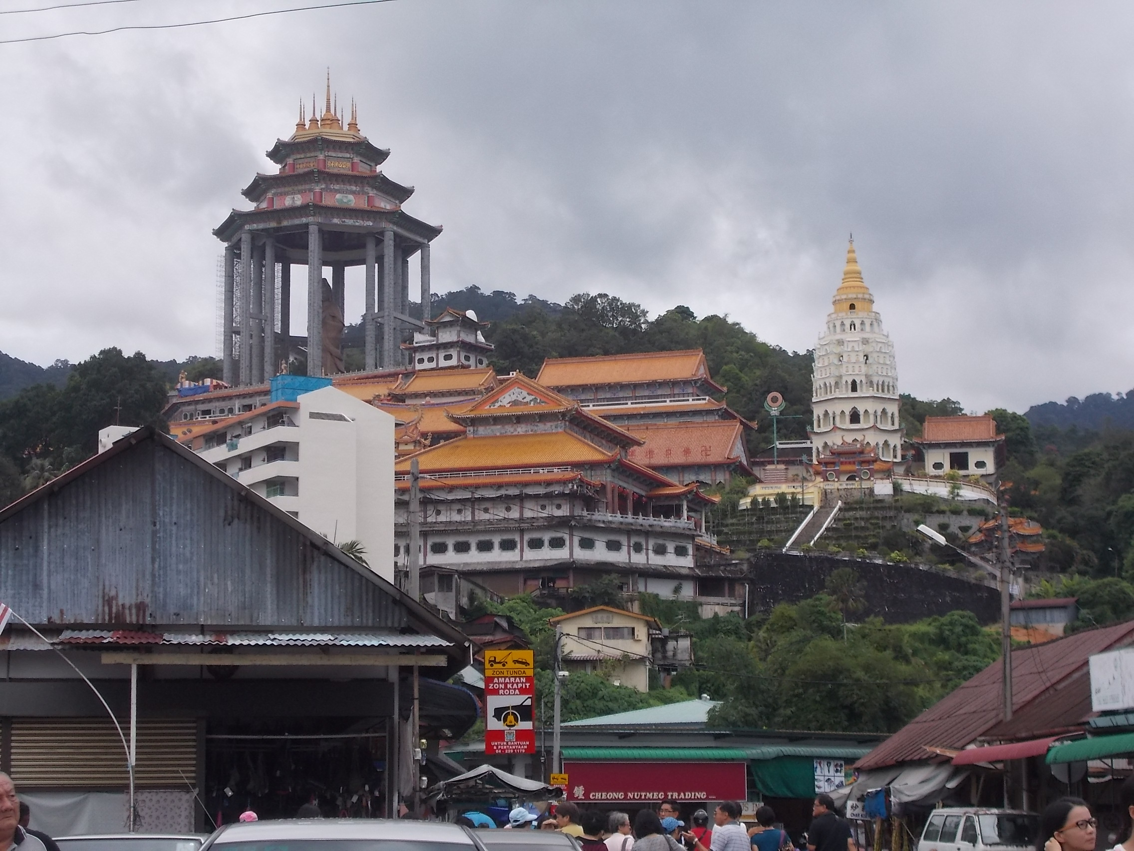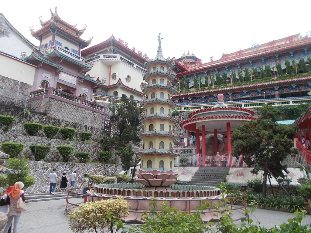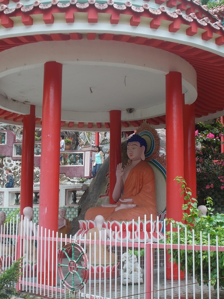Następnym przystankiem był słynny kompleks swiątyni Kek Lok Si. Po drodze chwyciłyśmy jeszcze lokalne przekąski- słodycze ze „smoczego owocu”, które były właściwie taką delikatną chałwą z orzeszkami w środku, a chwilę potem coś czego nazwy nie pamiętam – drobno pokrojone tofu obtoczone w prażonych orzeszkach z przyprawami.