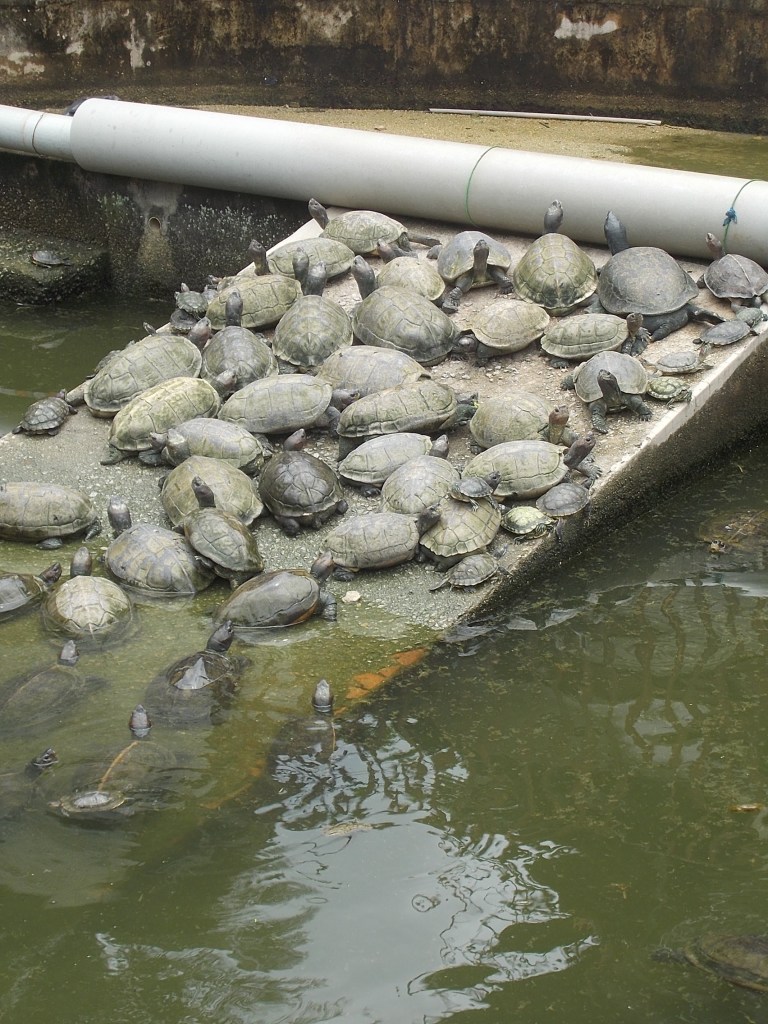 Ale wracając do świątyń – są PRZEPIĘKNE! Na dolnym tarasie znajduje się sadzawka z żółwiami. I to nie taka zwykła – żółwi są w niej setki! Od malutkich żółwików po naprawdę ogromne okazy.