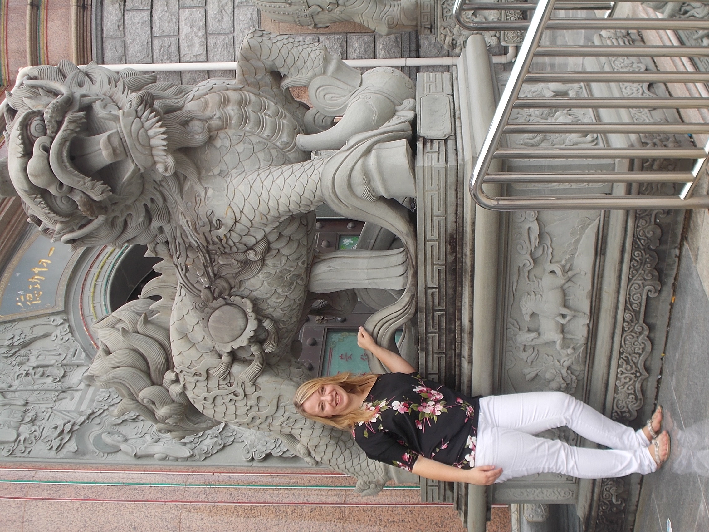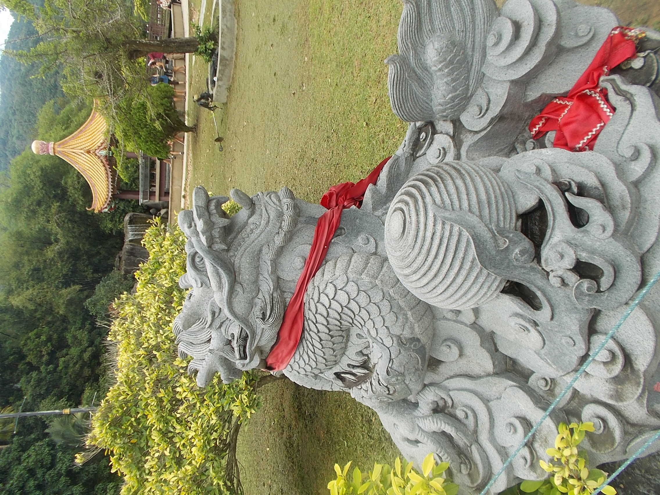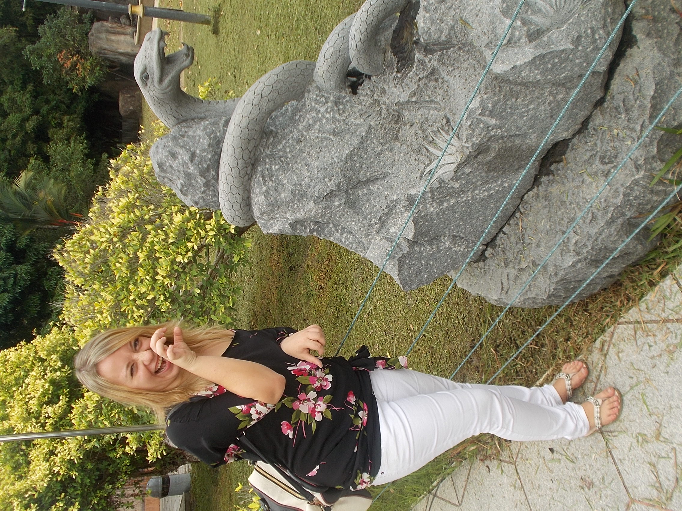 Na szczycie znajduje się świątynia i piękny ogród w stylu chińskim,z wieloma rzeźbami przedstawiającymi chińskie znaki zodiaku – ja, urodzona w 1989r., jestem wężem.