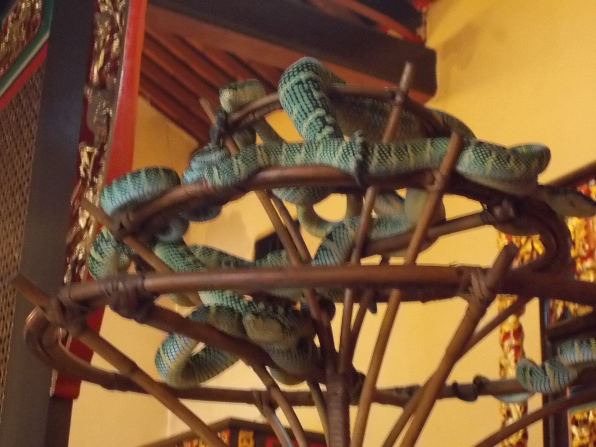 A to węże, mieszkają zaraz przy ołtarzu na prowizorycznych „drzewach”.
