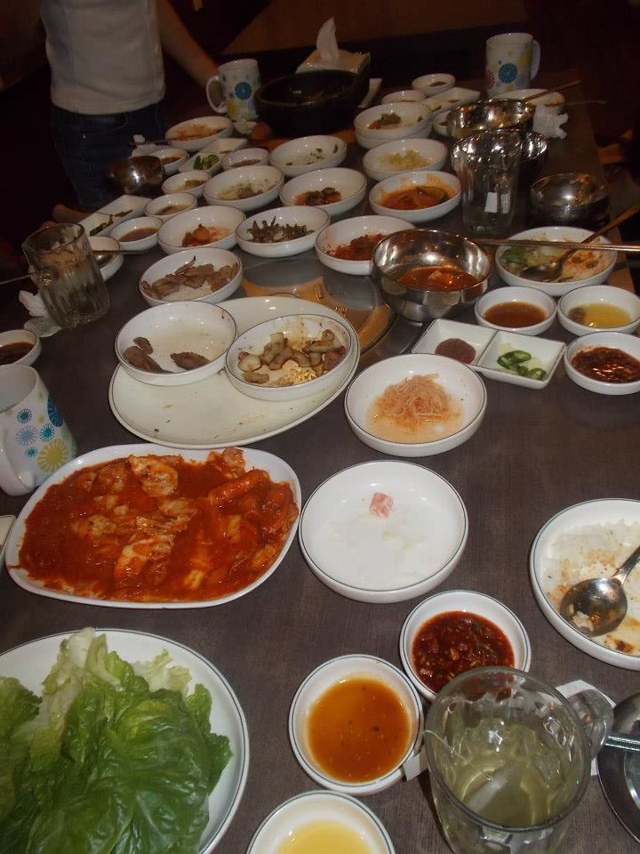 Logistycznie, koreańskie jedzenie dość trudno jest konsumować. Koreańskie pałeczki są inne niż klasyczne chińskie, zamiast okrągłych są spłaszczone, przez co trudniej się je trzyma i trudniej nimi operować. Nie są też tak wygodne podczas trzymania w rękach. Dlatego mimo moich dobrych chęci, musiałam korzystać z łyżki podczas kolacji.
