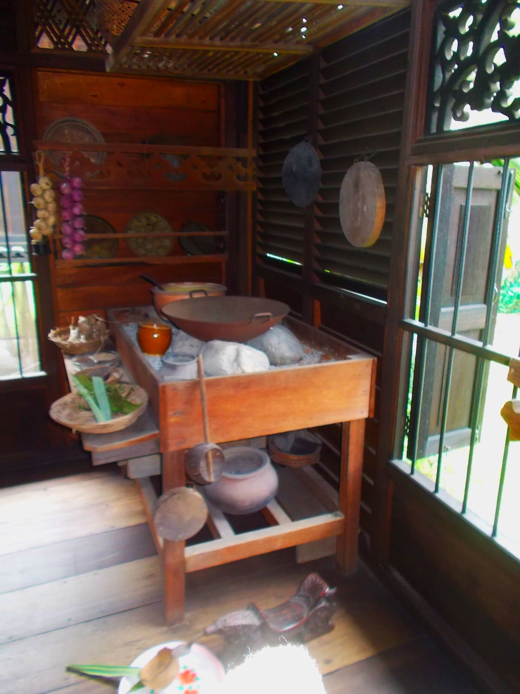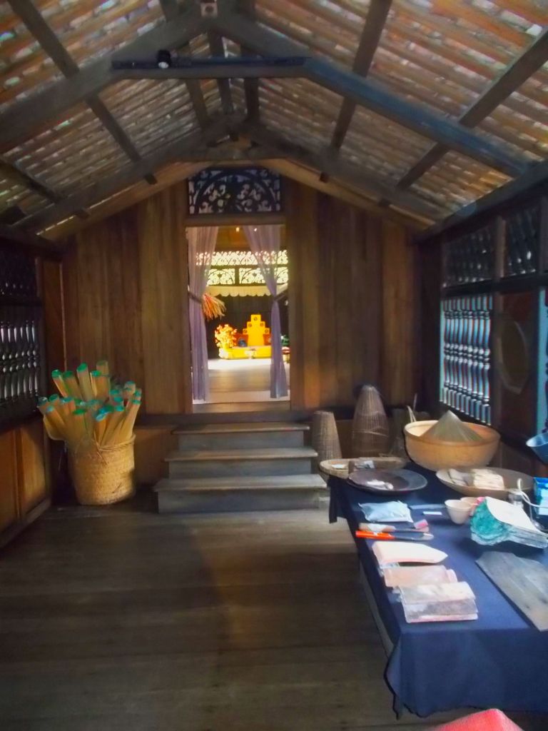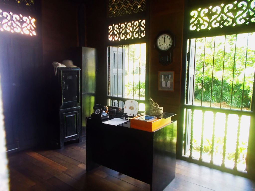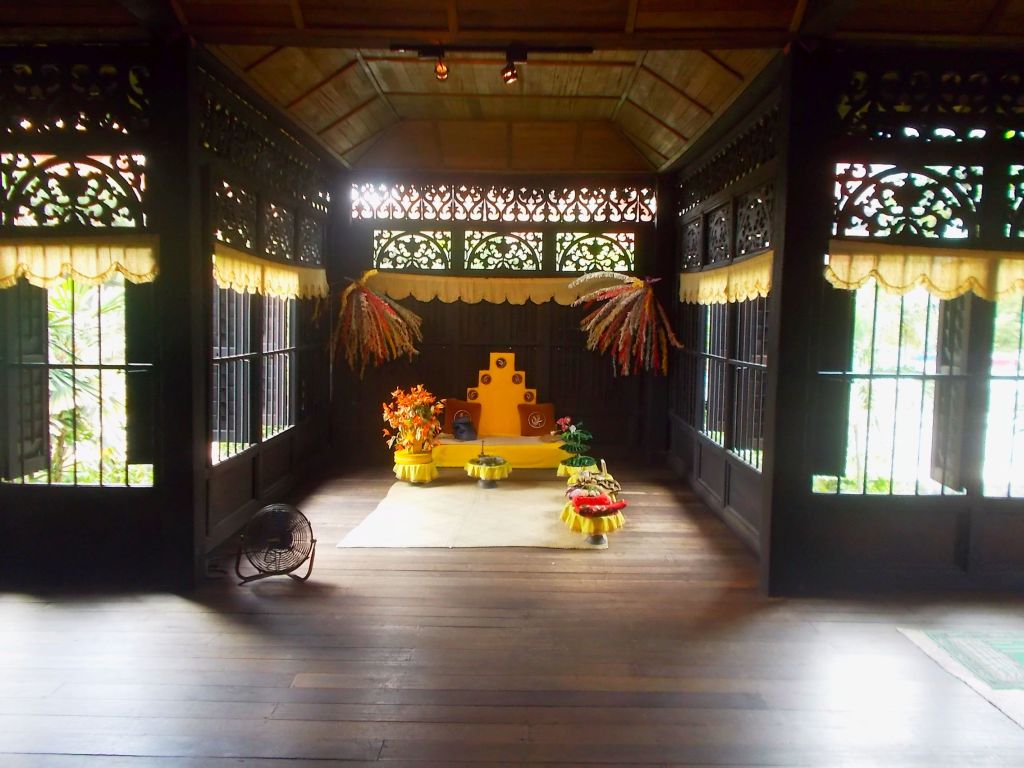 Dom jest naprawdę wyjątkowy – początkowo został wzniesiony i był użytkowany przez rodzinę bogatego władcy wioski na północy Malezji (przy granicy z Tajlandią). W latach ’80 został opuszczony w związku z brakiem męskiego potomka w rodzinie, który to mógłby przejąć nieruchomość. Dom stał więc pusty i zarastał zielskiem. W latach ‘90tych został ofiarowany towarzystwie Konserwacji Malezyjskich Zabytków, które zdecydowało się przenieść dom do Kuala Lumpur. Budynek został więc dokładnie opisany, każda deska i dachówka ponumerowana a następnie dom został rozebrany, część po części. Wszystkie „puzzle” domu zostały przwiezione do Kuala Lumpur i rozpoczął się mozolny proces odbudowywania domu – zajęło to ponad rok. Potem budynek został porządnie zakonserwowany (przeciwko termitom i innym stworzonkom lubującym się w drewnie) i wyposażony w meble z lat ’50 i ‘60tych.