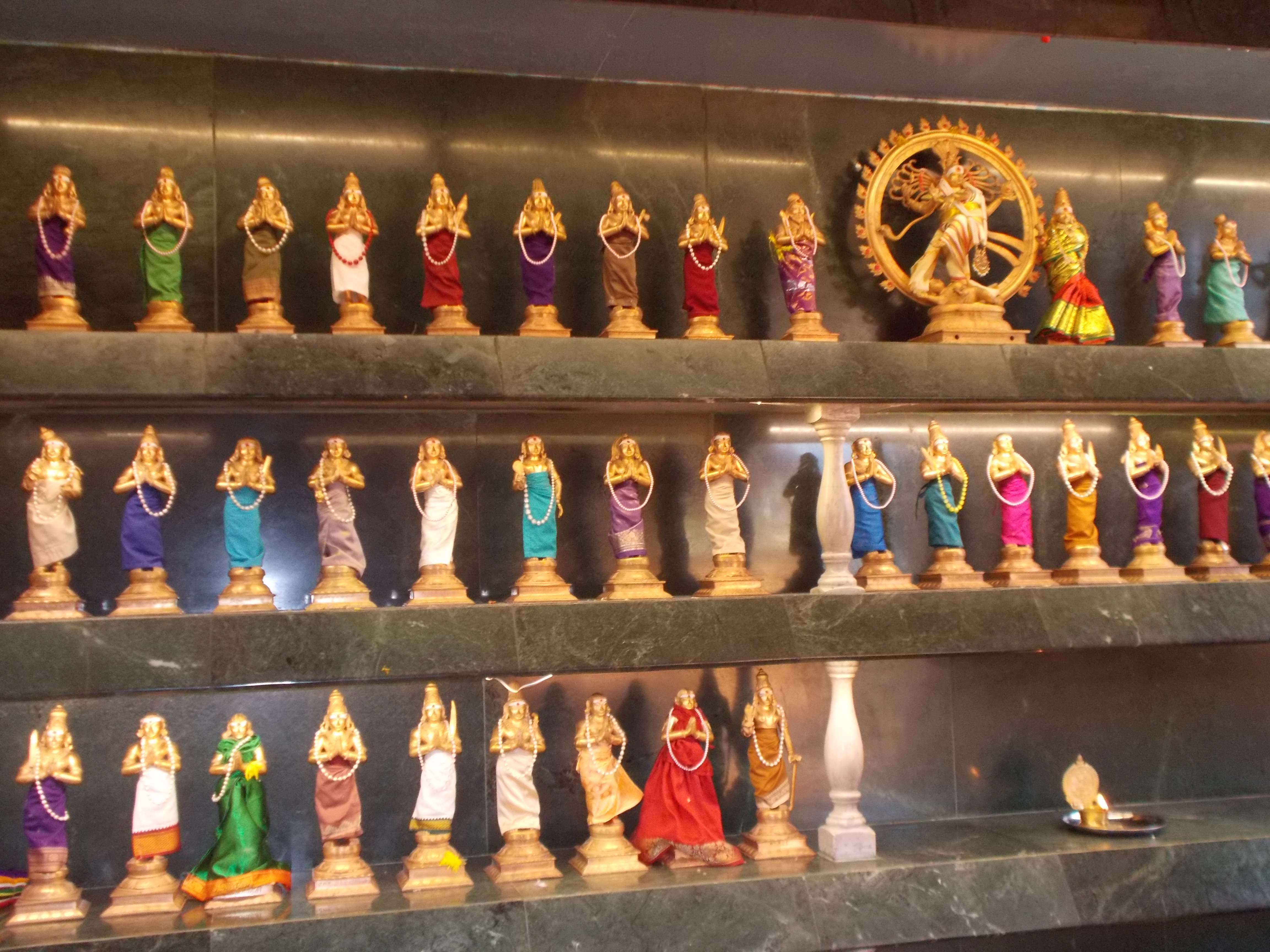 W środku świątyni znaleźć można głównie… przestrzeń, bo oczywiście krzeseł i stołów nie ma. Są za to „domki” w których mieszkają bogowie. Do tego znajdują się tu też dodatkowe atrakcje, jak np. ściana pełna laleczek ubranych w ubranka i biżuterię, figurki krów naturalnej wielkości i kilku kapłanów, śledzących każdy ruch odwiedzających.