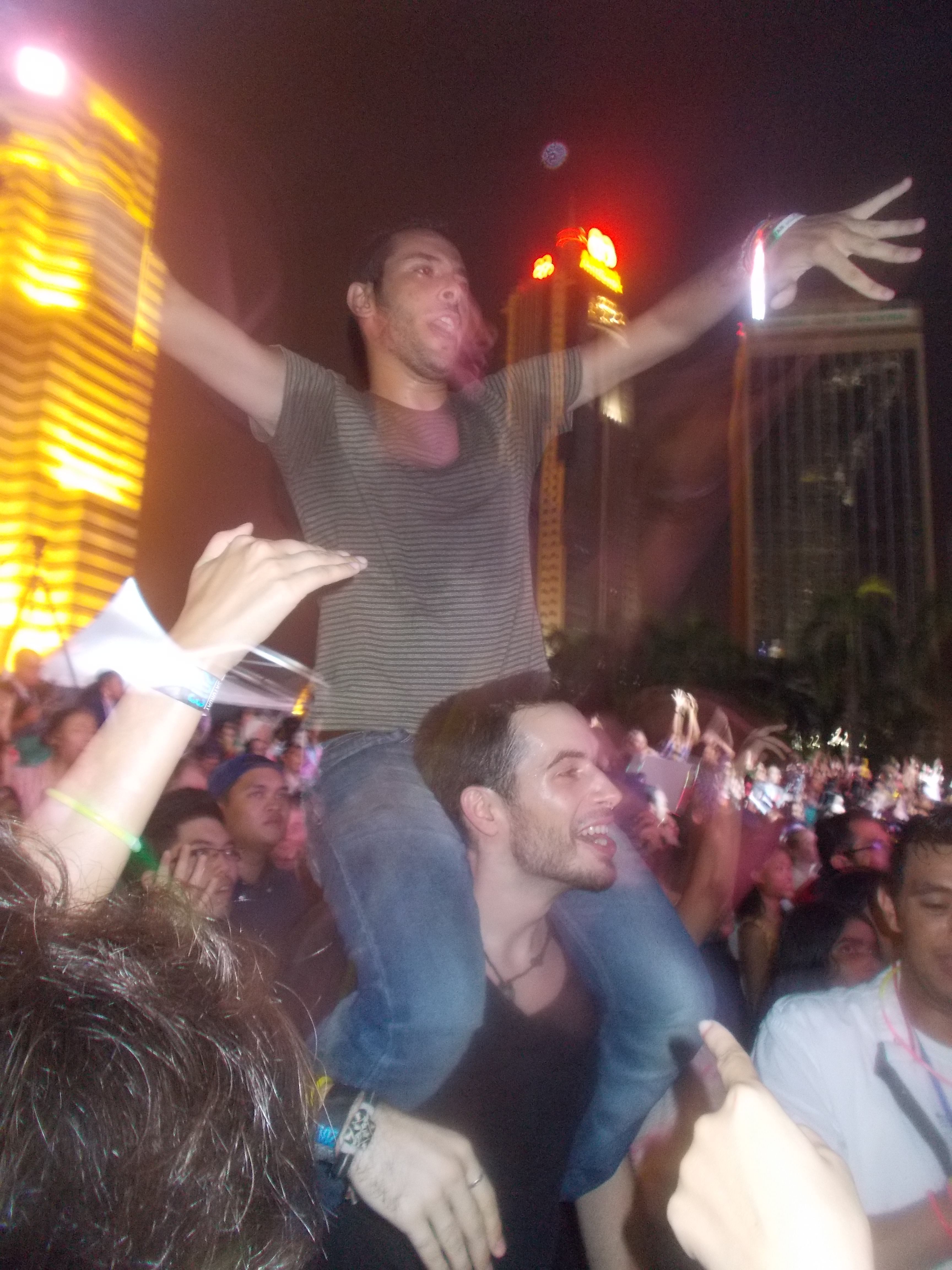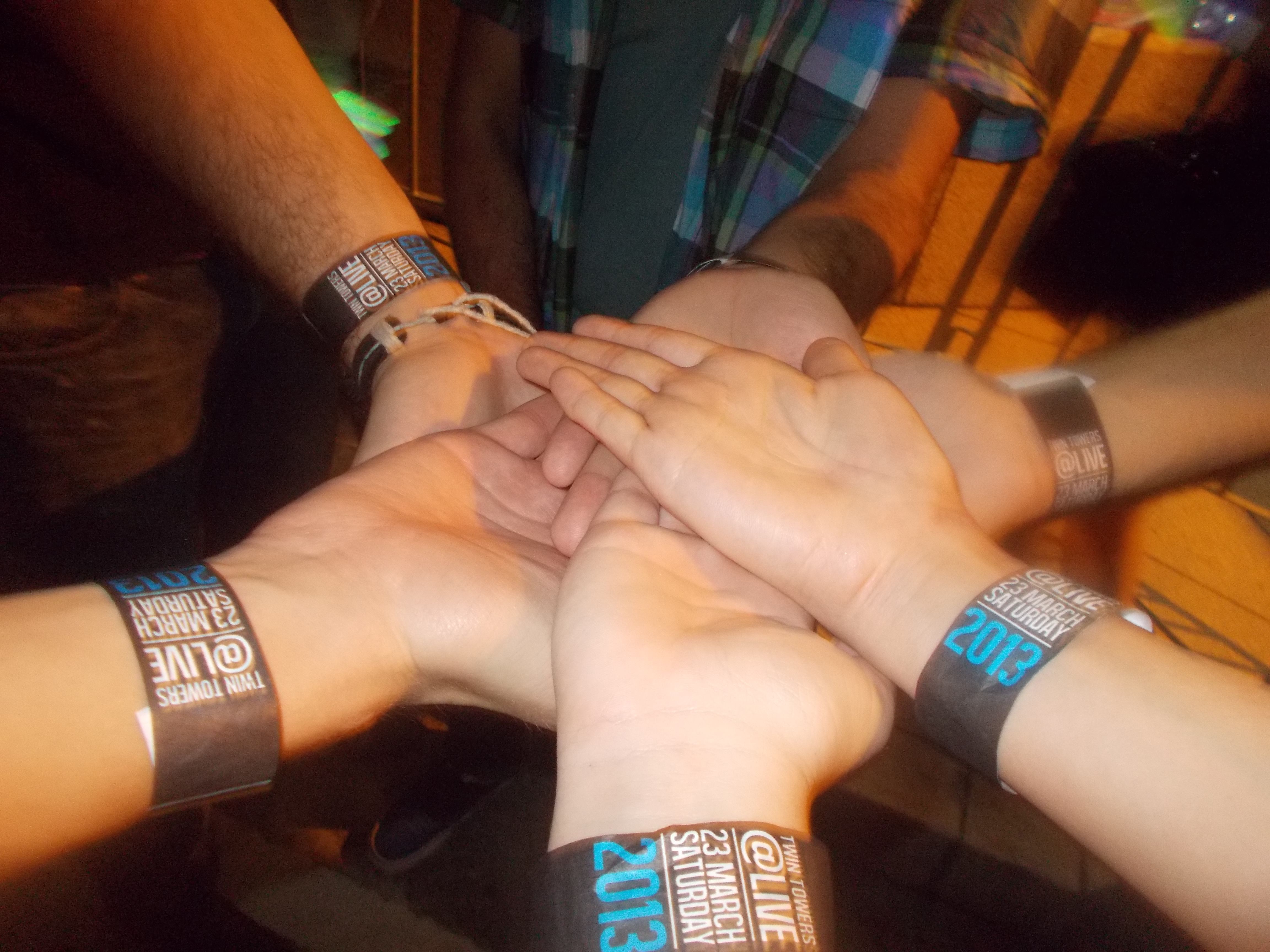 Przy wejściu dostaliśmy opaski na ręce i świecące w ciemności bransoletki- świetny gadżet, zwłaszcza że las rąk pod sceną wyglądał przez to naprawdę magicznie. Rozdawano też butelki wody mineralnej- bardzo dobry pomysł, bo mimo późnej porywysoka temperatura dawała o sobie znać.