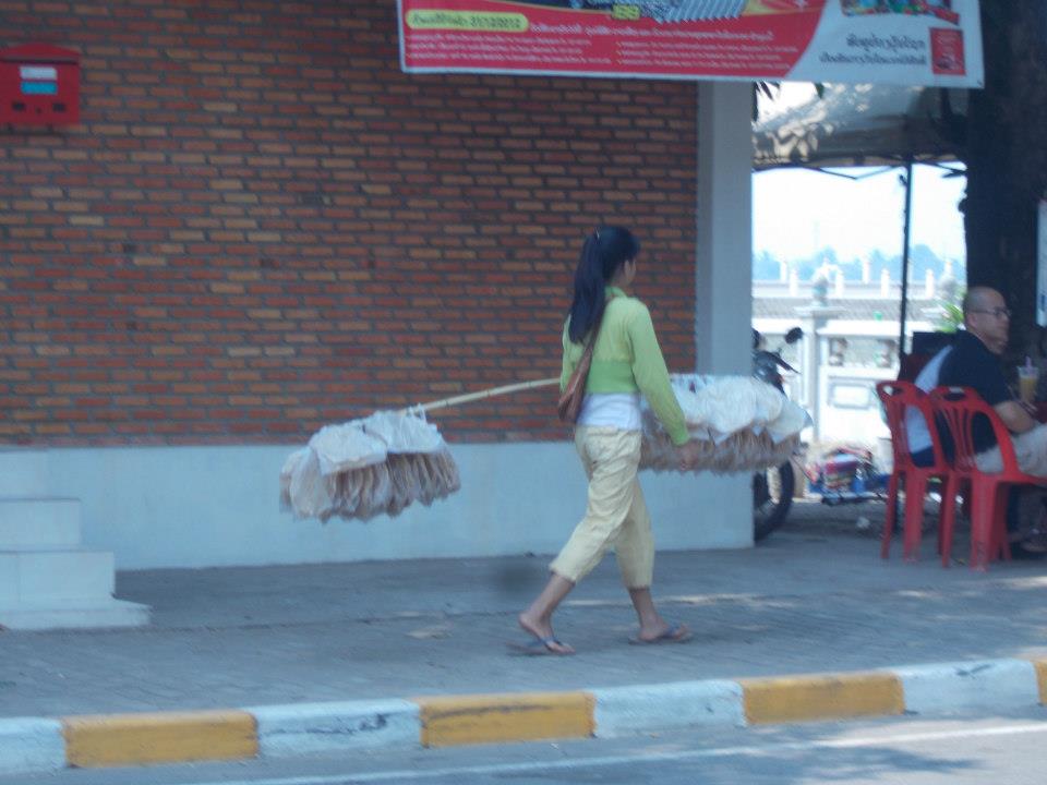 Już w Vientiane zauważyłam cechę społeczeństwa Laotańskiego, która jest naprawdę widoczna gołym okiem: kobiety pracują ciężej i dłużej niż mężczyźni. Tak jak w Malezji podział pracy i uczestniczenia płci w życiu publicznym jest w miarę wyrównany, tak w Laosie… W każdej restauracji czy sklepie spotkać można ciężko pracujące kobiety. Sprzedają, gotują, przenoszą ciężkie torby i kosze, pilnują dzieci…. A mężczyźni siedzą pod domem i gapią się w tłum, ewentualnie pracują jako rikszarze i śpią w hamaku przez pół dnia. A tu przykład kobiety pracującej: