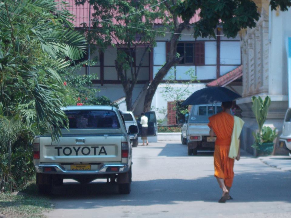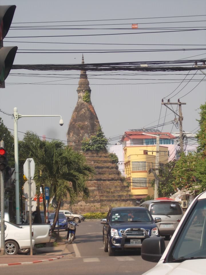Jak na stolicę, to miasto to nie powala wielkością. Mieszka tu zaledwie 200 000 mieszkańców, co i tak daje w sumie najbardziej zaludnione miasto w Laosie. Ciekawa sprawa- samochodów prawie nie ma. Jest trochę rowerów, riksz, ale samochody spotyka się rzadko, przechodzenie przez ulicę jest więc naprawdę komfortowe- bo ulice są po prostu puste! Mam wrażenie że samochody są tu po prostu drogie i jeśli kogoś stać, nie kupuje małego pojazdu, tylko od razu wielkiego jeepa. Ma to też silny związek z legendarną (bardzo słabą) jakością laotańskich dróg. Po stresujących przygodach drogowych w Malezji, Laos wydał nam się rajem na ziemi.