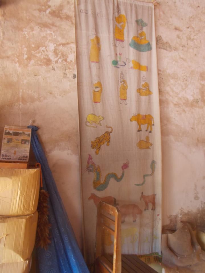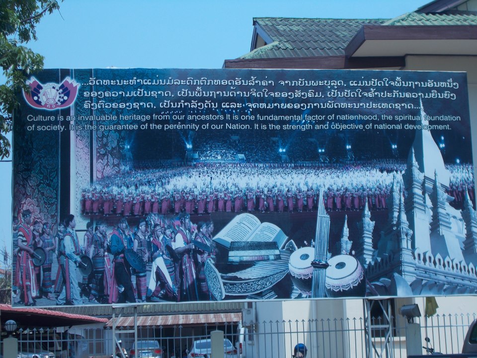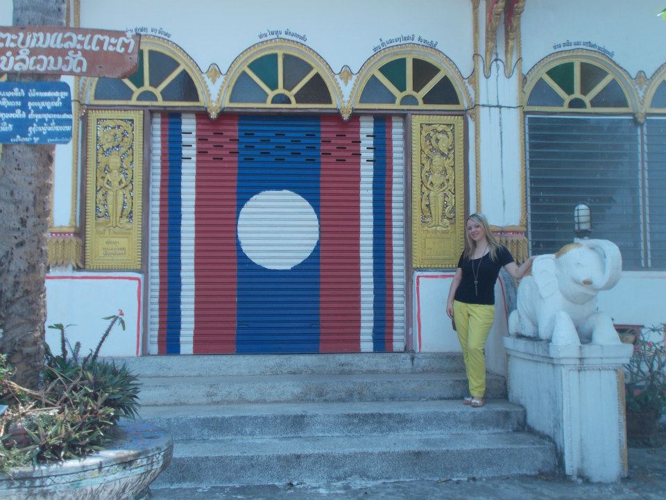 W jednej ze świątyni znalazłyśmy wielką flagę Laosu wymalowaną na ścianie, oto ona: