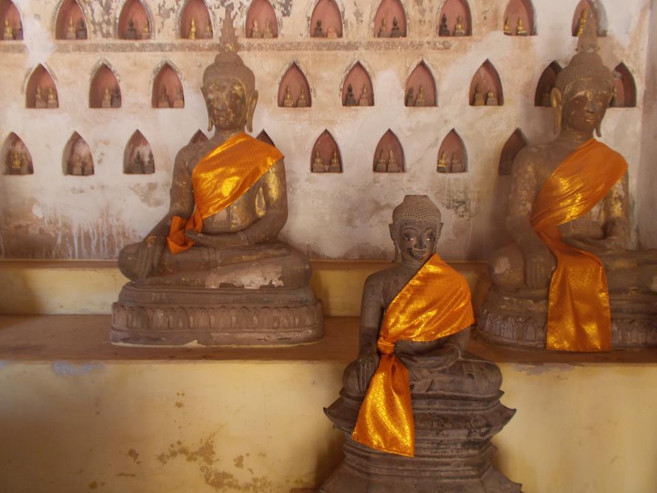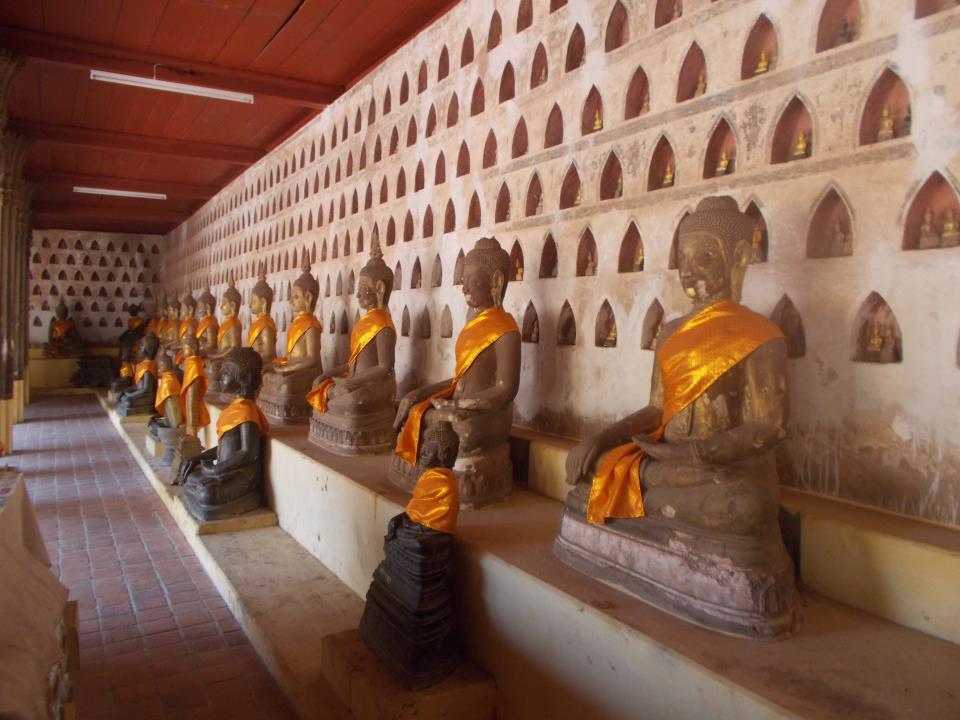 A to już muzeum Buddy, wielki dziedziniec ze świątynią po środku. Krużganki kryją w sobie tysiące rzeźb przedstawiających Buddę, od malutkich statuetek po wielkie posągi. Co ciekawe- każdy jest inny, ma inny wyraz twarzy i jest wykonany z innego materiału. Jest to największy w Azji zbiór tego typu. Piękne wydało mi się zwłaszcza to, że nieważne do jakiego stopnia rzeźba jest zniszczona (odłupany nos, ręka, czy nawet cała figurka- pozostawiony został tylko „piedestał” na którym stoi Budda) – wszystkie są traktowane z równym szacunkiem. W pewnym stopniu oddaje to charakter laotańczyków, ich szacunek i przywiązanie do buddyzmu, naprawdę wzruszające.