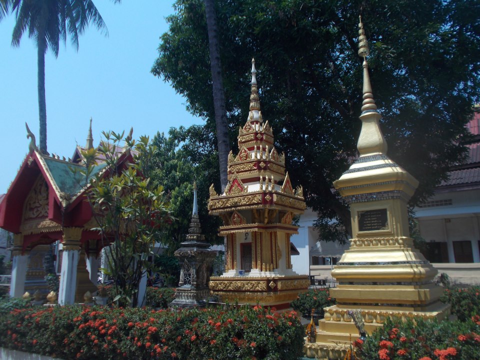 Kolejna charakterystyczna rzecz- wszechobecne świątynie buddyjskie! (Kraj jest oficjalnie Demokratyczną Republiką Ludową – cały czas się dziwiłam, ja to jest, że kraj komunistyczny tak silnie wspiera religię. Ale fakt, gdyby rządzący opowiedzieli się za ateizacją, straciliby całkowicie poparcie i wywołali protesty – 61% ludności w Laosie wyznaje buddyzm, a około 20% animizm.