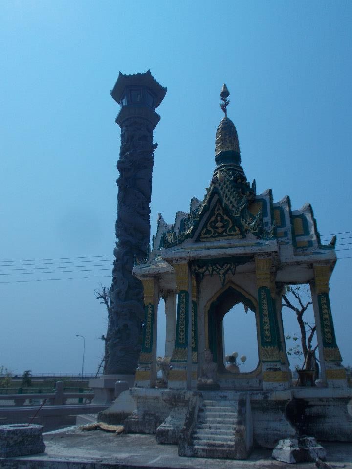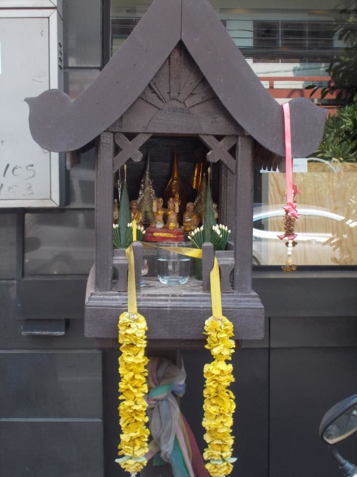 Kolejna z charakterystycznych Laotańskich rzeczy: osobista kapliczka przed domem/sklepem.