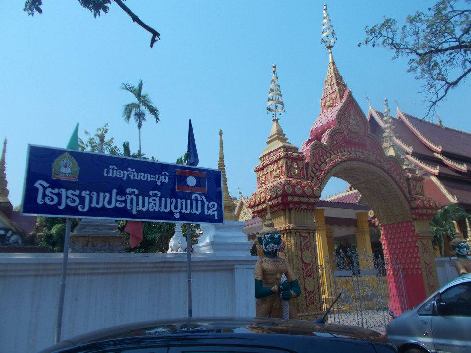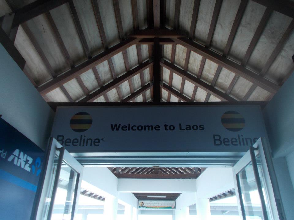 Po 2,5 godzinach lotu dotarłyśmy do Vientiane. Na lotnisku powitały nas bannery witające nas w „kraju Tysiąca Słoni” oraz „kraju radosnych ludzi”. I faktycznie, panowie celnicy byli bardzo radośni i bardzo serdecznie życzyli nam miłego pobytu i komplementowali blond włosy. Z wizą nie było problemu, po zapłaceniu 40 $ dostaje się wklejkę do paszportu, a za dodatkowego dolara można otrzymać wizę bez wymaganego zdjęcia paszportowego (nieoficjalnie).