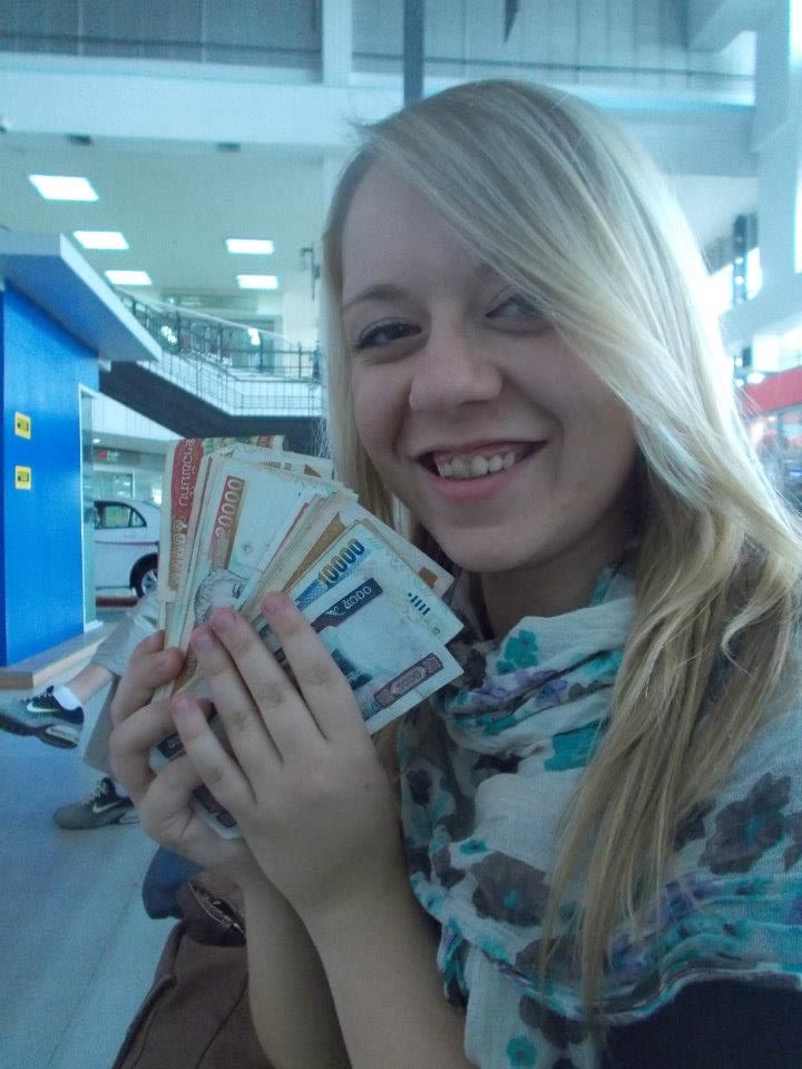 Pierwsza chwila radości- kiedy po wizycie w kantorze zostało nam wręczonych całe naręcze banknotów o nominałach 20 000, 50 000 i 100 000 Kip. Prawdziwe poczucie bogactwa 🙂