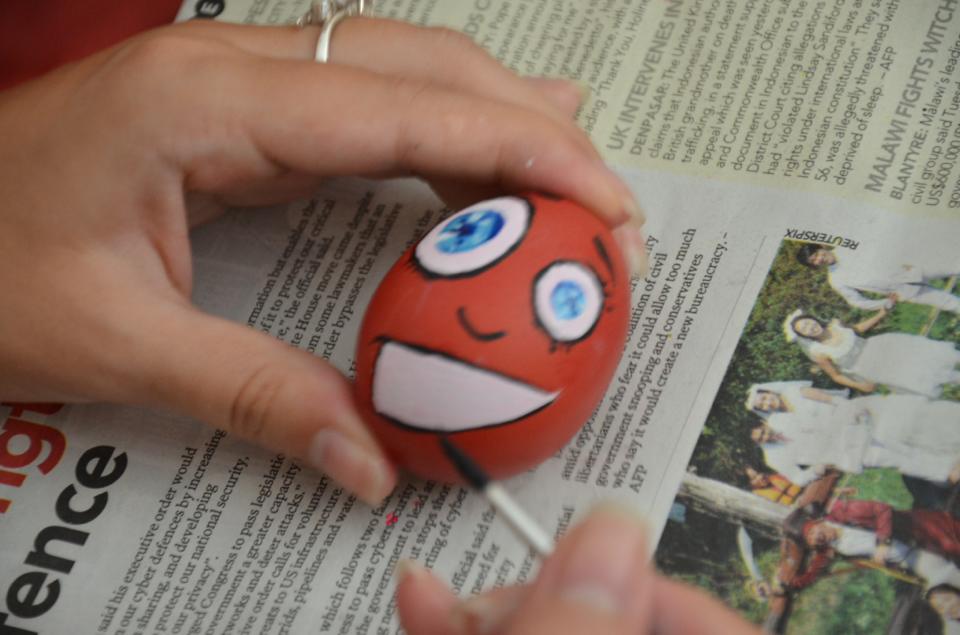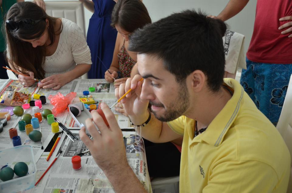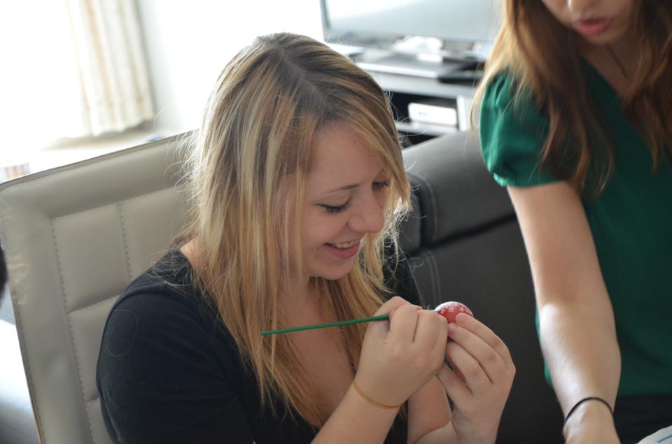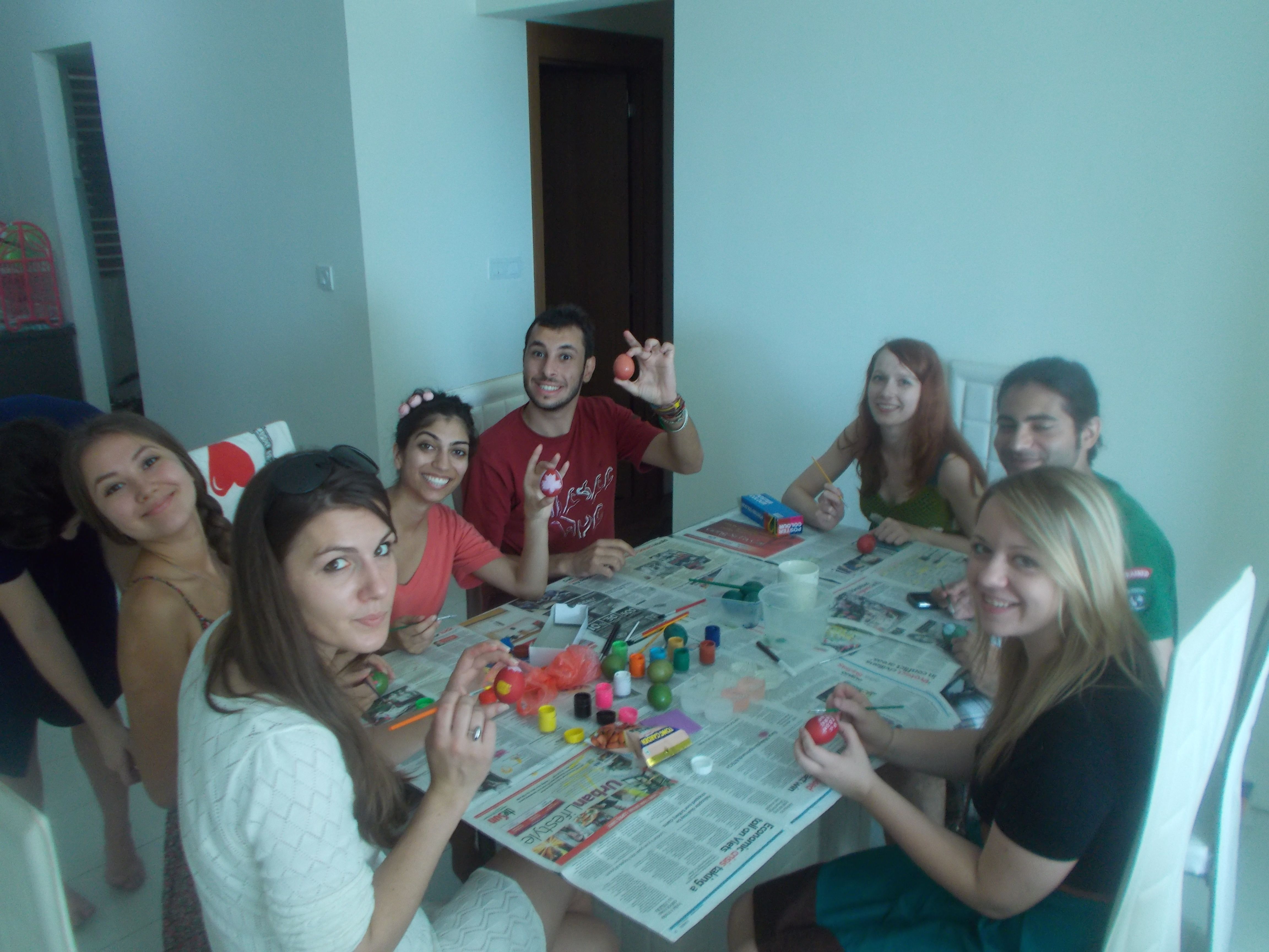 Dlatego też zaplanowałam własne święta- zaprosiłam znajomych Polaków i obcokrajowców żeby pokazać im polskie tradycje. W niedzielne przedpołudnie zebrałam znajomych z 11 krajów (Polska, Malezja, Egipt, Urugwaj, Kazachstan, Ukraina, Kanada, Iran, Litwa, Bangladesz i Węgry) i namówiłam wszystkich do wspólnego malowania pisanek. Dla zdecydowanej większości było to pierwszy raz, i nie do końca wiedzieli, co można namalować na jajku, ale rezultat był naprawdę zachwycający!