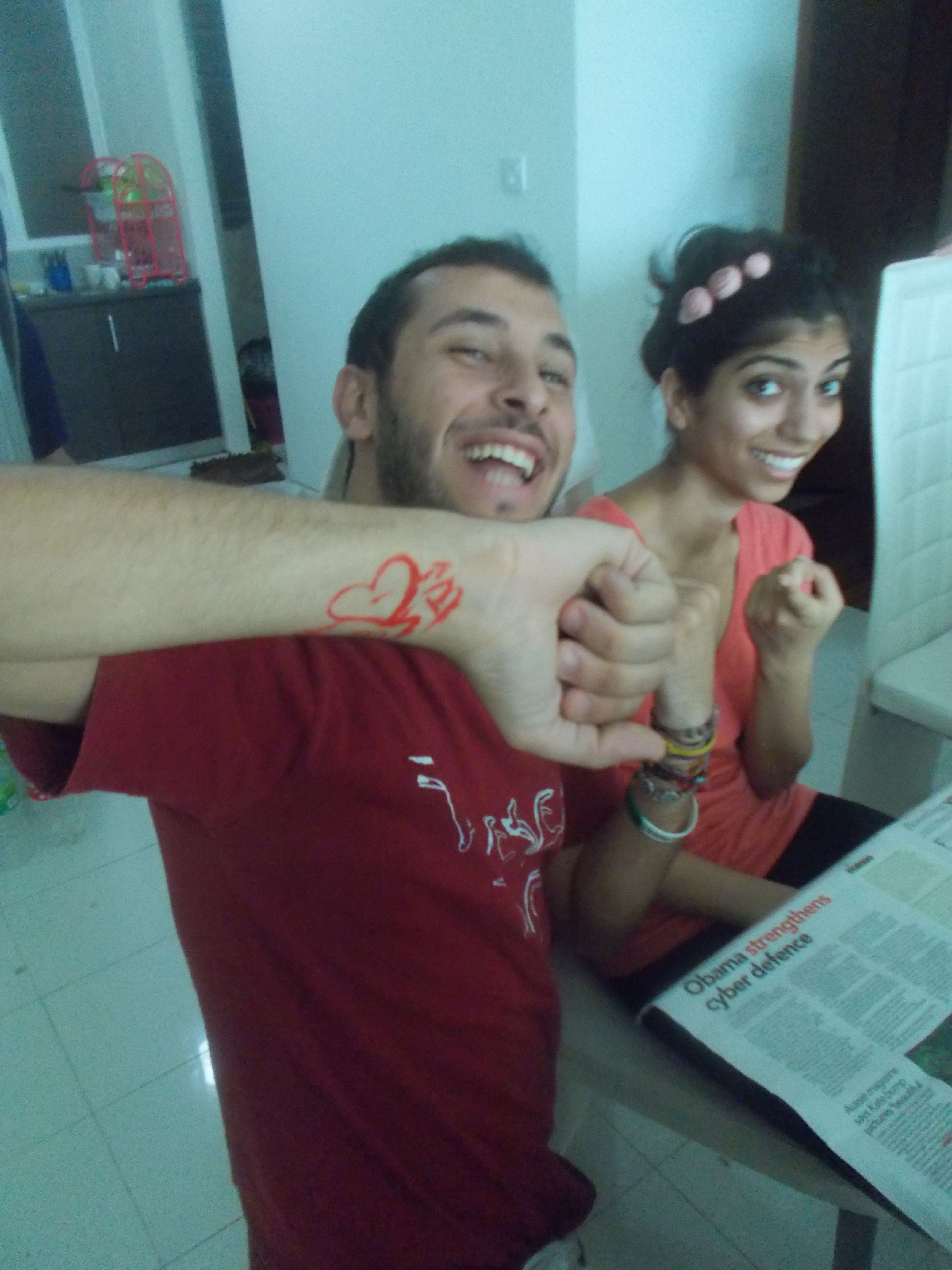 Po jedzeniu przebraliśmy się i nałożyliśmy oliwkę na włosy – nadeszła pora na zmianę święta i kultury- czas na Holi!