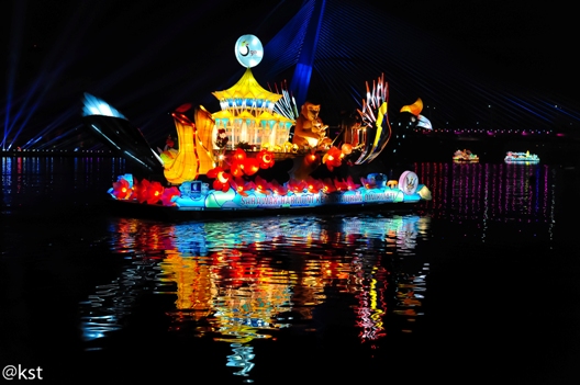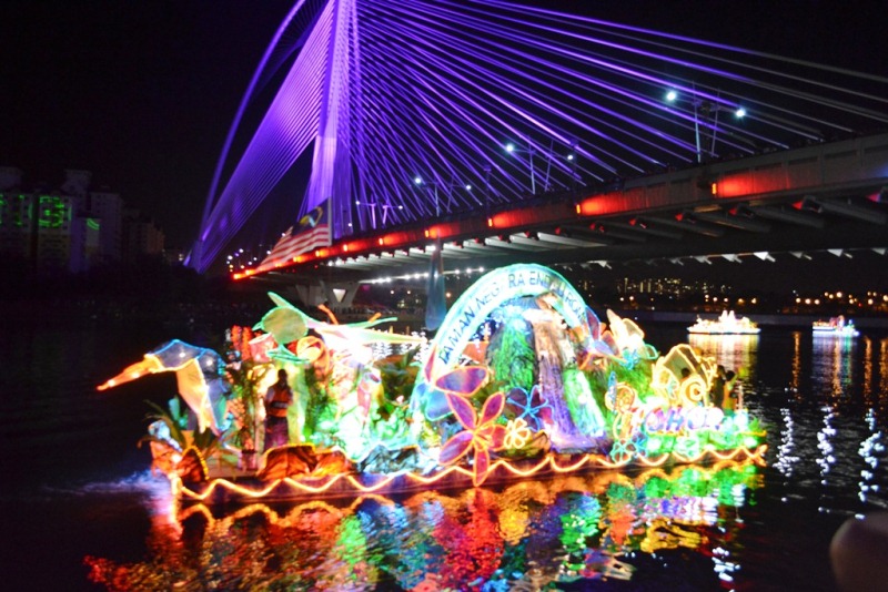 W tym samym czasie na jeziorze odbywa się parada łodzi – i w tym przypadku również każdy stan Malezji ma obowiązek zaprojektować i wykonać piękną łódź wypełnioną światełkami i reprezentującą kulturę regionu. Łodzie powoli suną po jeziorze a prowadzący opowiada o każdej łodzi i kulturze stanu, który reprezentuje. Stanowi to świetną lekcję kultury Malezyjskiej – dla mnie było to bardzo przydatne, jako że nie wiem jeszcze za dużo o poszczgólnych regionach kraju.