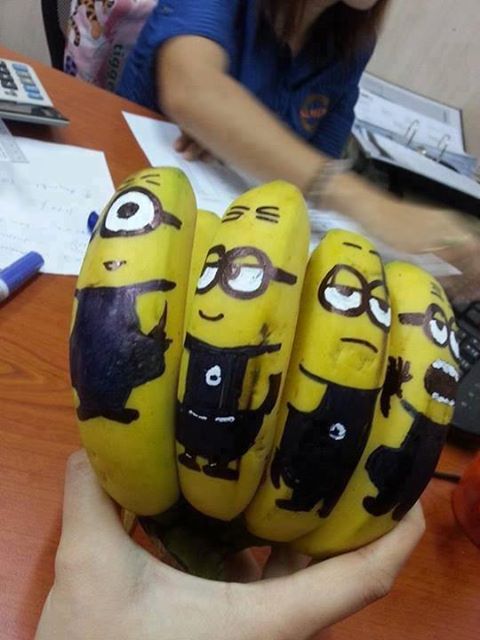 PS Poza zabawkami z McDonalda są też oczywiście dostępne inne produkty,jak przytulanki, gry, aplikacje na telefon itp. Ludzie nawet tworzą własne Minionowe twory, np. na  bananach: