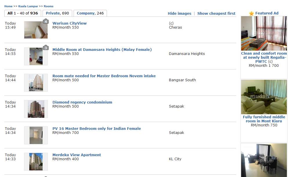 Ważna informacja na temat wynajmu: Bardzo często zdarza się że pokoje oferowane są tylko chińczykom/indusom/malajom i tylko kobietom/mężczyznom. Rasistowsko – to fakt, ale negocjować się nie da. Będąc europejczykiem nie można być wybrednym, bo poszukiwanie mieszkania może trwać miesiącami.
