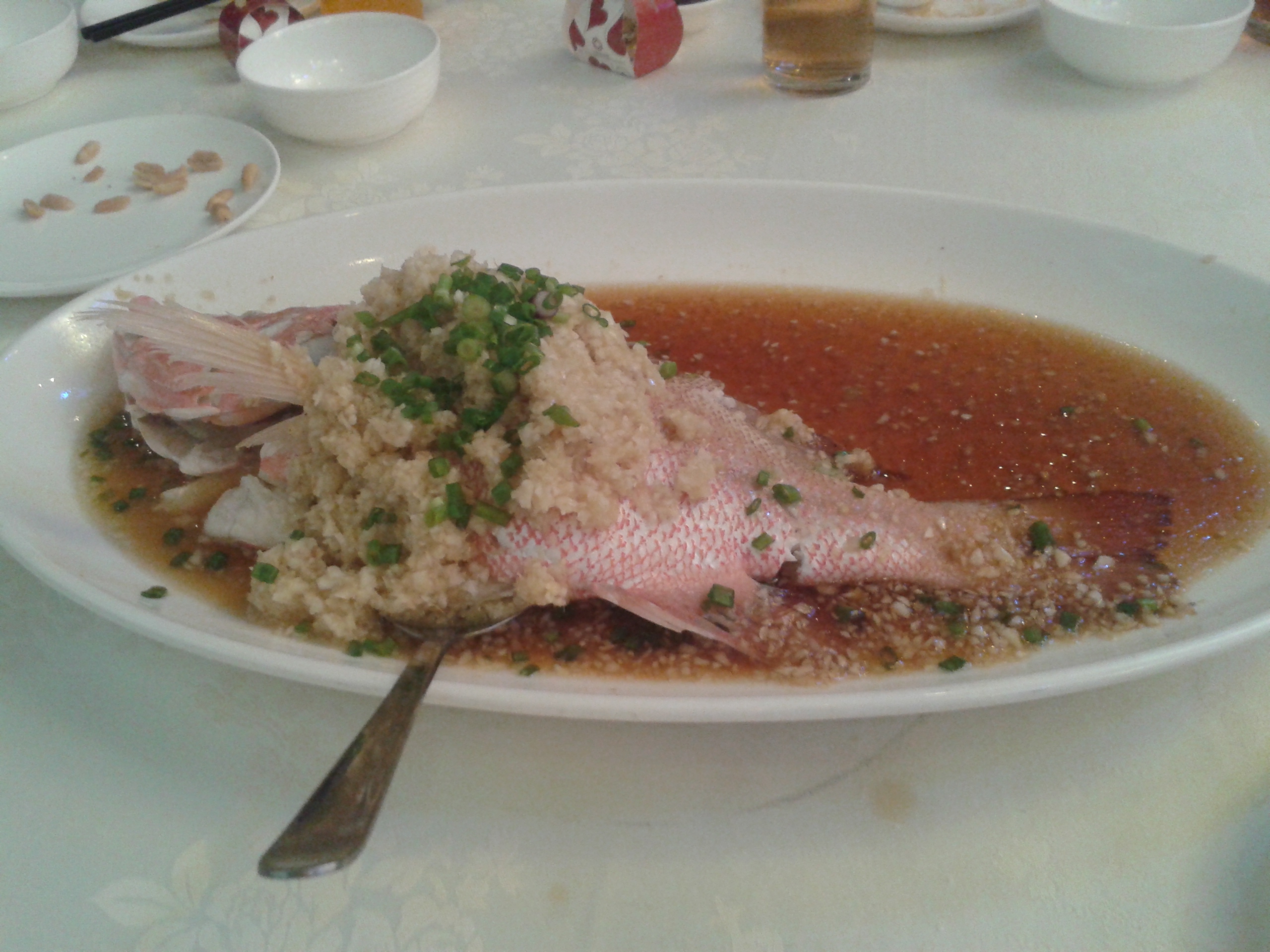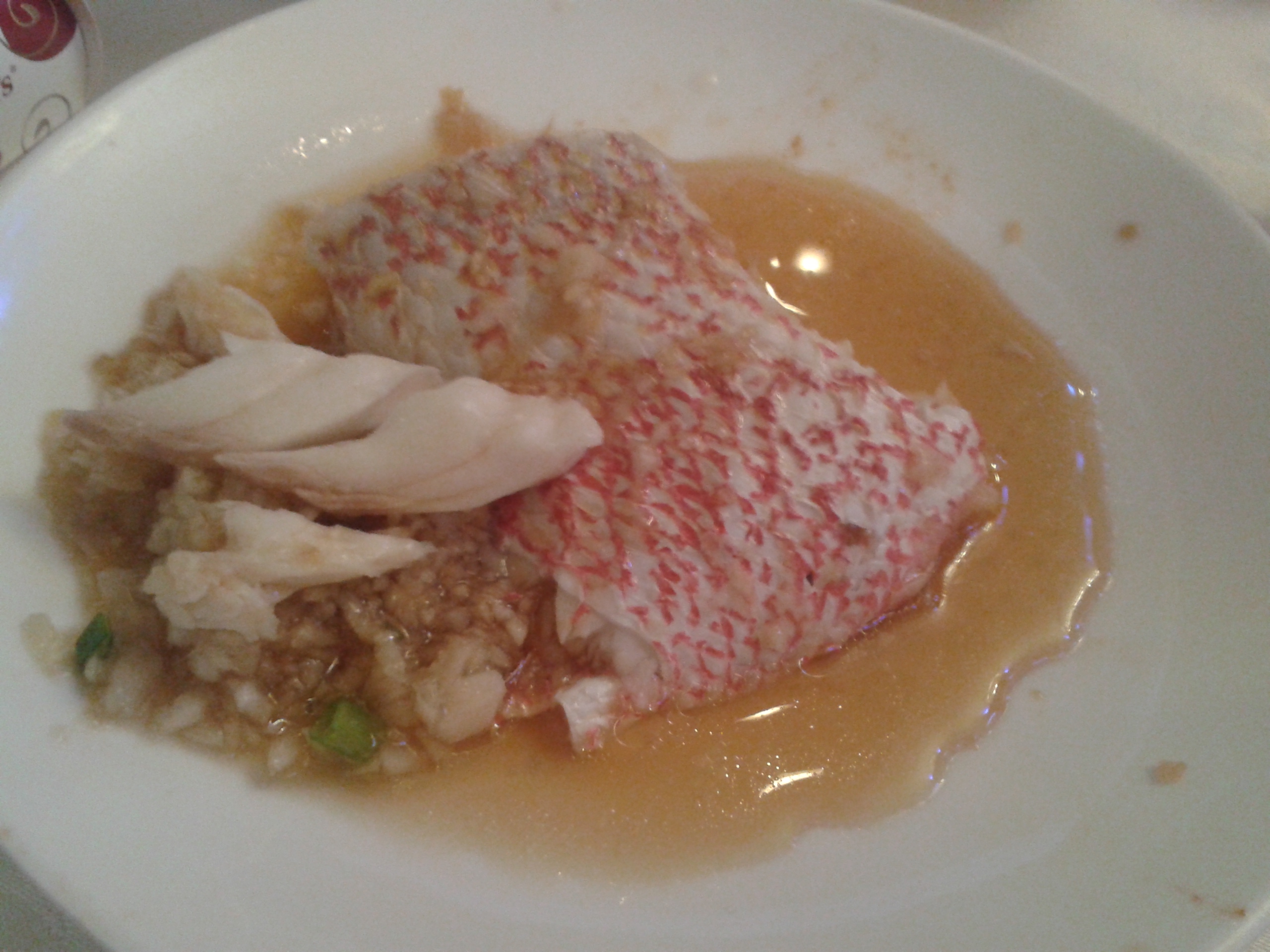 Kolejne danie – ryba – red snapper, zrobiona na parze, obsypana mieszanką imbiru, czosnku i ziół. Smaczne, bardzo delikatne mięso rybie, niestety ze sporą ilością ości. No i każda ryba z imbirem jest pyszna!