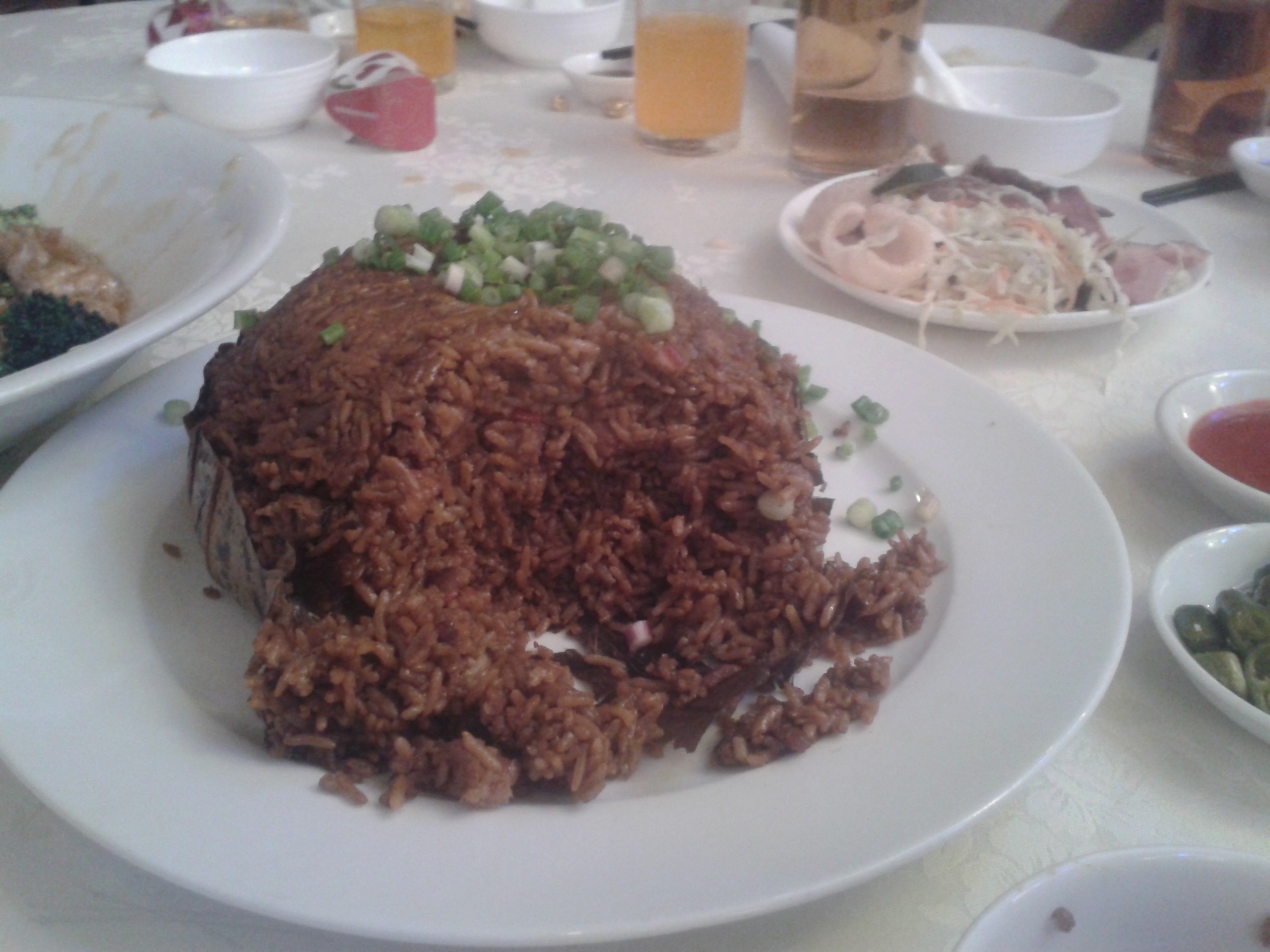 A tu wreszcie ostatnie danie przed deserem: smażony ryż zawinięty w liście lotosu: