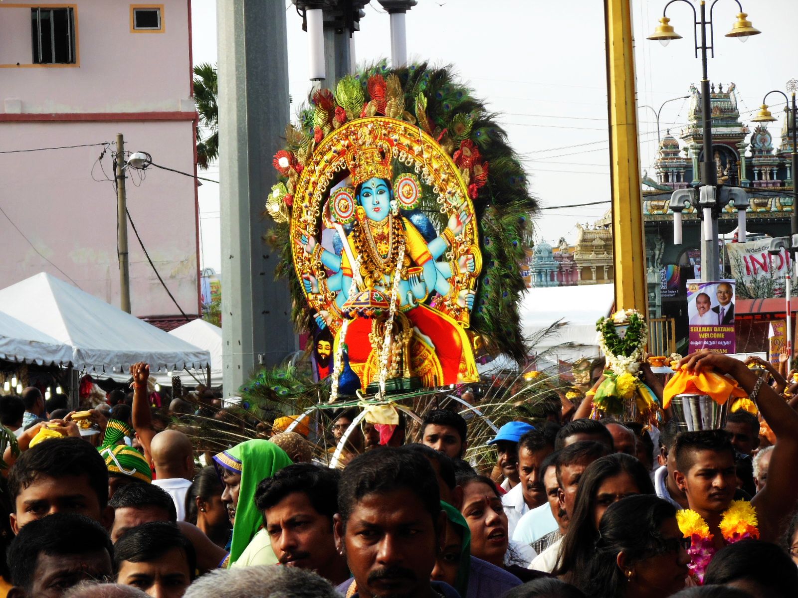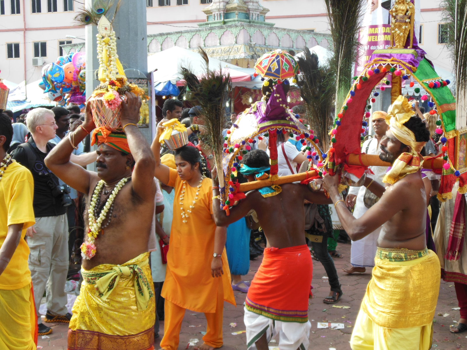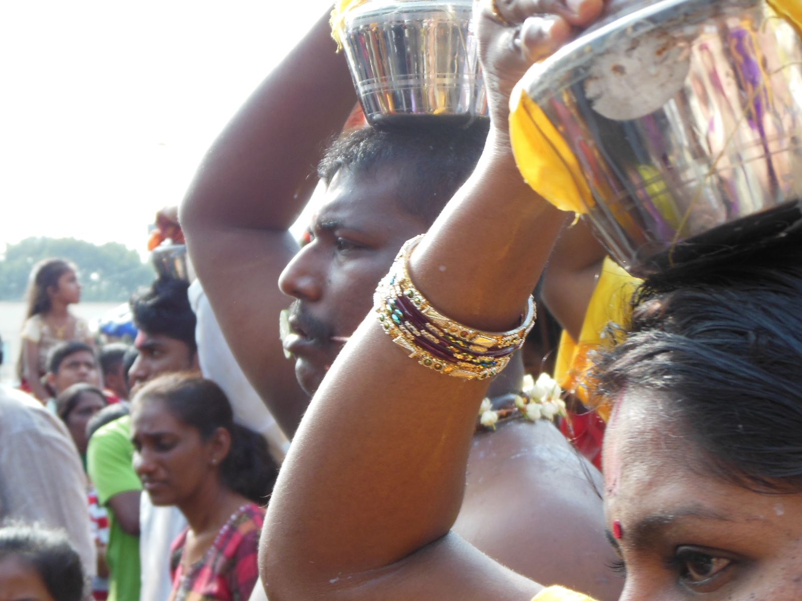 *dziękować bogu można w różny sposób – najbardziej popularny to piesza pielgrzymka ze świątyni przy Petaling Street do Batu Caves (ok 15 km), idzie się boso, w pomarańczowej szacie, a na głowie lub ramieniu trzyma się dzban pełny mleka, które później ofiarowuje się w świątyni. Maszeruje się za wielkim powozem, na którym wieziony jest święty posąg. To właśnie ten powóz: