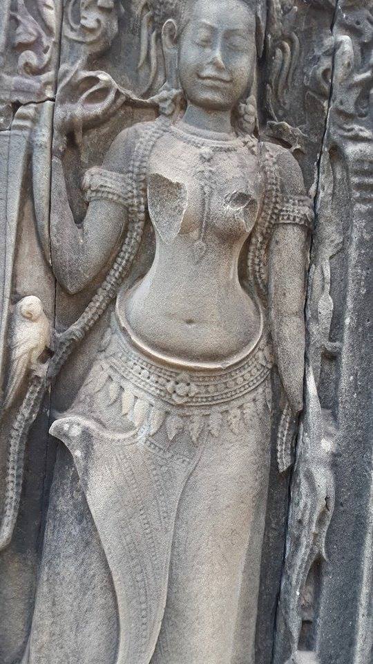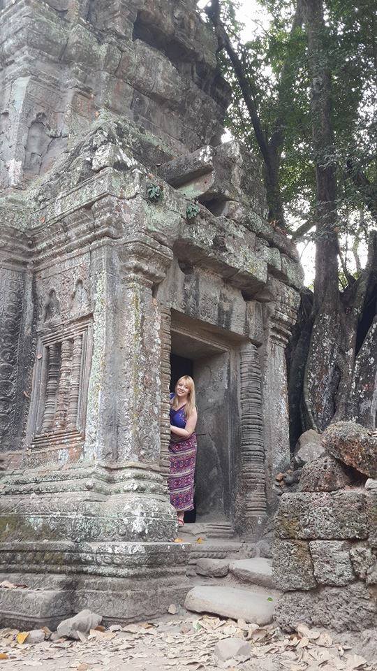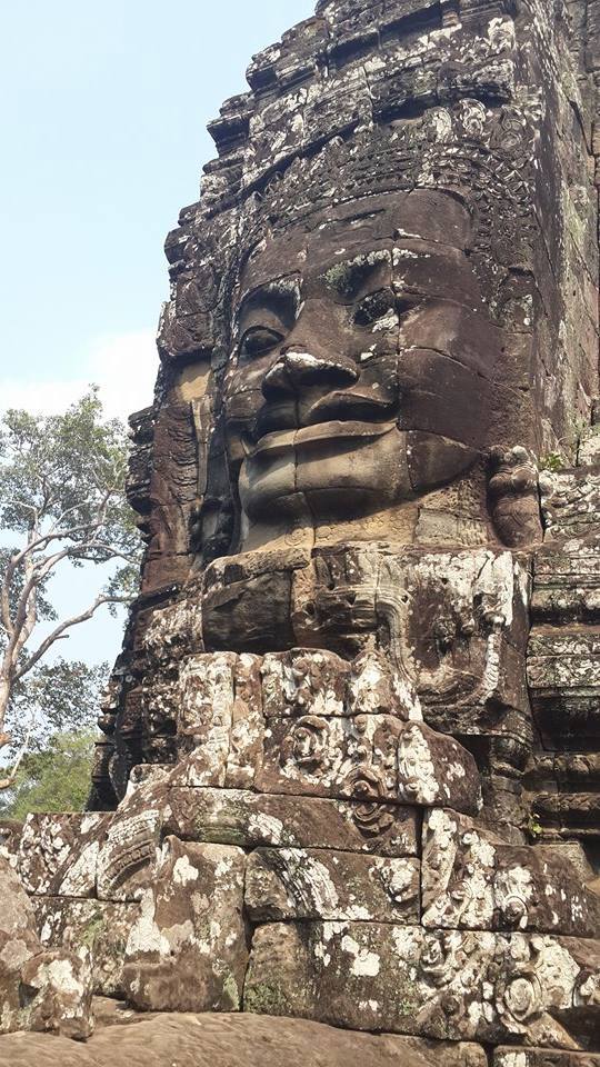 Dla mnie najprzyjemniejszym momentem zwiedzania był ponad godzinny pobyt w Bayon – świątyni z twarzami wykutymi w kamieniu. Po obejrzeniu świątyni z zewnątrz znalazłam cichy kącik w cieniu, z dala od większości turystów. Było to jakieś stare okno, właściwie otwór w skale. Usiadłam na podłodze i poczułam przyjemny przewiew, odrobina chłodu z kamieni… Zrobiło się też jakby ciszej. Jakby czas się zatrzymał.