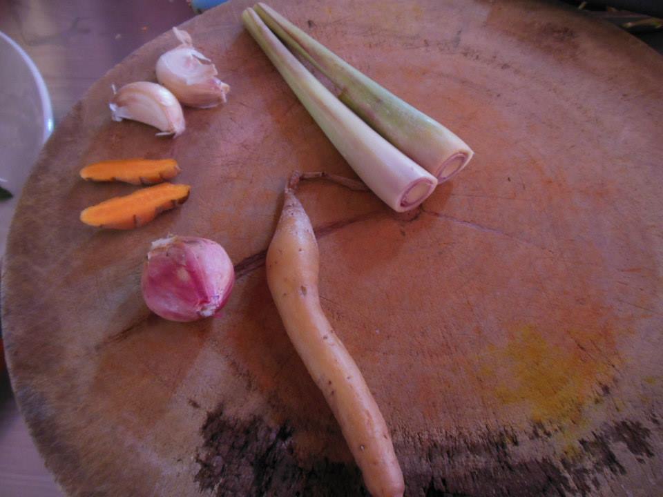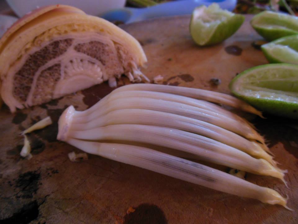 Widok z kuchni na ulicę – w ciągu dnia pustki na ulicach, bo wszyscy siedzą w Angkor Wat. Wieczorem tłumy przychodzą napić się piwa właśnie na Pub Street. 1959410_10203160822651104_920192412_n 1964844_10203160823091115_1137719507_n 1920192_10203160820571052_577540879_n Tak właśnie wygląda kwiat bananowca, po przekrojeniu. W środku jest mnóstwo jakby małych, wąskich, białych bananków. I sporo czarnych pestek. 1962695_10203160836371447_632458821_n 1888446_10203160837011463_1635297324_n Tutaj zestaw przypraw, w tym imbir i trawa cytrynowa, które trzeba potem zmielić w moździerzu. 1962687_10203160837811483_459971049_n