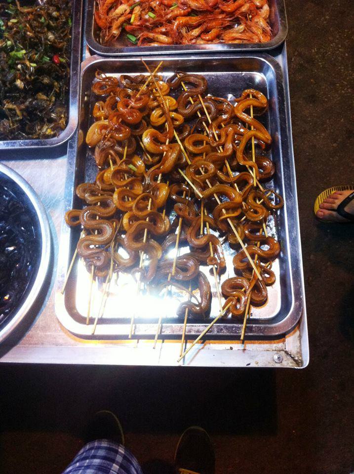A na nich: warzywa, gadżety, smażone węże, ciasteczka z chrząszczami… No i oczywiście owoce – do zwykłych malezyjskich tropikalnych owoców jestem przyzwyczajona, ale takie perełki jak świeży tamarynd, trzcina cukrowa (pokrojona w kostkę, bierze się to do ust i wysysa słodki sok) i słodziutkie owoce których nie znam nazwy – to było coś! 1959744_10203173094597895_845858896_n  1780711_10203161063817133_2064620682_n 1964935_10203161052536851_1441398755_n A na scenie między stoiskami można natrafić na występ pana/pani transwestyty, nazywanych tu ladyboys. Taniec brzucha, hip-hop… do wyboru! 1620813_10203160849051764_366671688_n