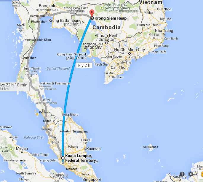 Kiedy rozważałam wyjazd, miałam w pamięci informację o tym, że to jeden z wciąż najbiedniejszych i najmniej rozwiniętych krajów Azji. Troche dziwna sprawa, skoro wszyscy moi znajomi w Malezji już tam byli, tzn – jest to wybitnie turystyczne miejsce – a gdzie turyści tam i pieniądze. Niedługo miałam przekonać się, dlaczego. Pomimo moich wątpliwości skończyło się jak zwykle – promocją na Air Asia, która zakończyła wszystkie moje wewnętrzne spory, i wymusiła szybkie kupno tanich jak barszcz biletów (100 RM w dwie strony). Kambodża leży w sumie niedaleko Malezji: (niecałe 2 tys km) map