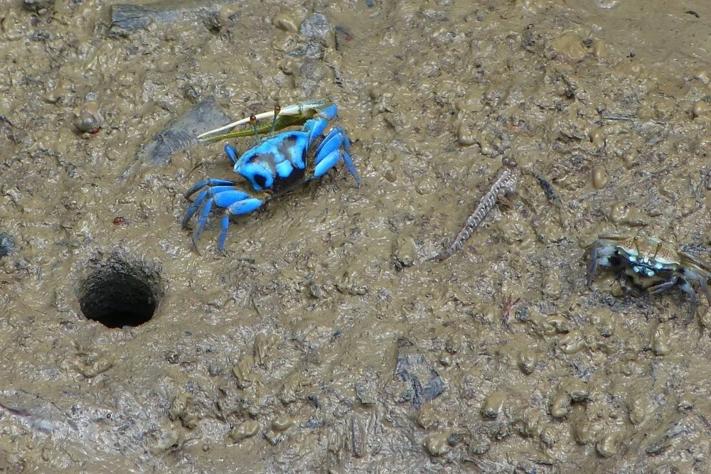 Towarzyszą im inne stworzonka, jak mud skippers, czyli jakby ryby z nóżkami, które oprócz przebywania w wodzie chodzą też po lądzie.