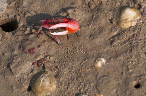 Ciekawostka: większość z występujących na wyspie krabów ma jeden wielki szczypiec, a resztę małych. Bardzo to niesymetrycznie wygląda, ale niezmiernie ciekawie.