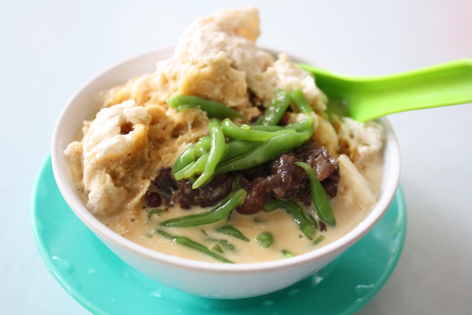 Najbardziej klasyczny malajski deser. Jego urok leży w prostocie składników. Mamy więc bazę z kruszonego lodu, polaną mleczkiem kokosowym. Na samym szczycie lodowej góry leży zielona sterta galaretek zrobionych z mąki z zielonego groszku. Wygląda to trochę jak sterta zielonych robaczków albo glonów – ale w smaku jest przyjemnie delikatne, rozpływa się w ustach! Nic gumowego. A w smaku nawet nie czuć groszku, tylko jakby skrobię, a do tego lekką nutę słodkości. Pod nią (lub nad nią, w zależności od kucharza) jest szczodra porcja puree z czerwonej, słodkiej fasolki. Brzmi dziwnie, ale smakuje pysznie, naprawdę świetnie komponuje się z lodem i kokosem! Trzeba spróbować żeby zrozumieć. Wisienką na torcie jest płynny, brązowy cukier palmowy, który jest czymś w stylu miodu, ale z bardziej kokosową nutą.