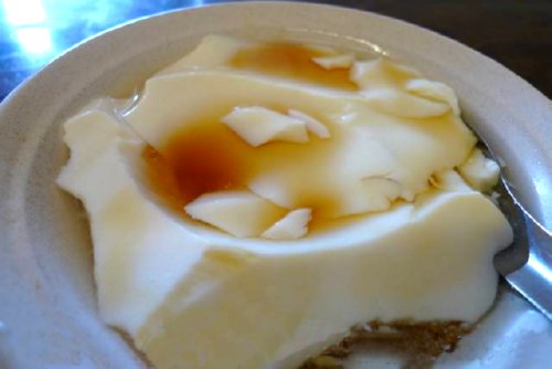 Chiński deser, tym razem na ciepło. Pudding z tofu, polany słodkim syropem lub cukrem palmowym. Bardzo miękki i kremowy, na pewno go polubicie jeśli gustujecie w tofu. Nie jest mocno wyrazisty w smaku, a bez syropu jest praktycznie bez wyrazu. Polecam jeść go w klimatyzowanych pomieszczeniach, bo jedząc go na ulicy od razu rozgrzeje was od środka. Nasłynniejsze miasto serwujące Taofu Fa to Ipoh na północy półwyspu Malajskiego.