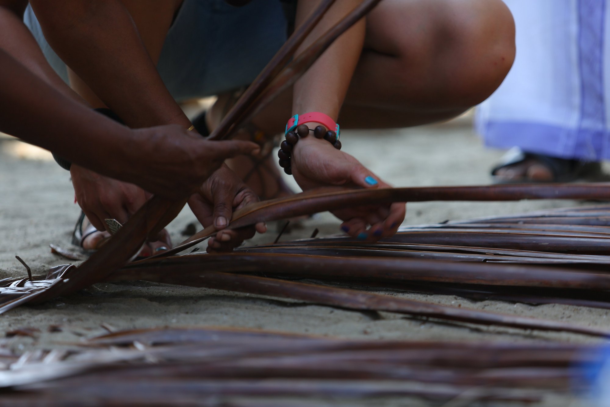 Pokaz wyplatania mat z liści palmowych