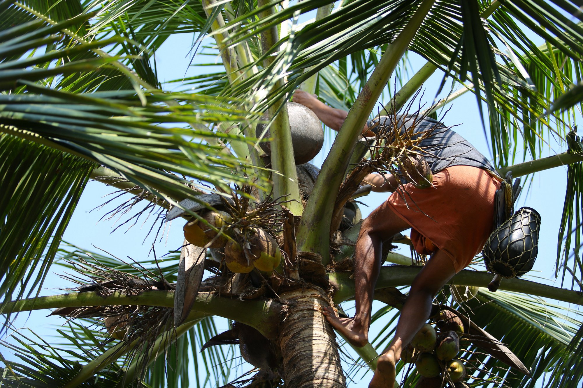 Przy wejściu na palmę posługują się specjalnym narzędziem, dzięki któremu wspinaczka jest o wiele łatwiejsza: