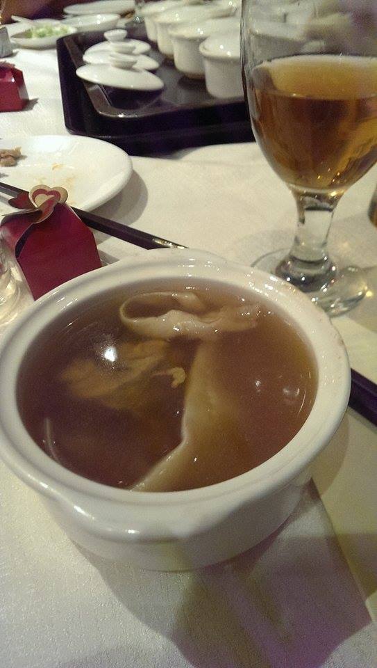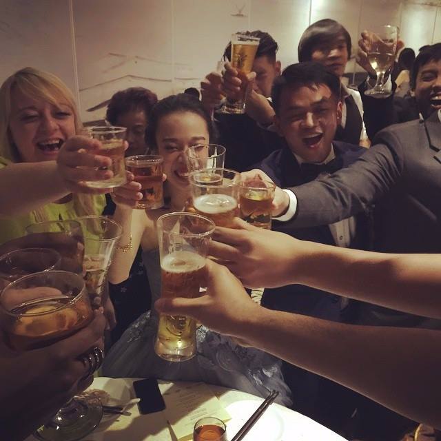 A w międzyczasie toastom („Yam seng” które to wykrzykuje się długo, aż do utraty tchu) nie było końcom. Było też karaoke, standardowe przemowy najbliższych i na końcu zbiórka podarków od gości, czyli czerwonych kopert zawierających gotówkę. Zasada jest taka, żeby podarować kwotę, która zwróci koszt posiłku organizatorom, czyli 100-150RM za osobę.