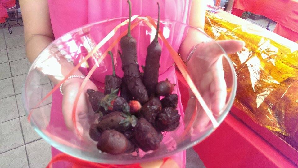 Następnie, wciąż trzymając pozę, druhny nakarmiły ich „pysznościami” w czekoladzie. Były więc np. truskawki, ale też… całe papryczki chilli!