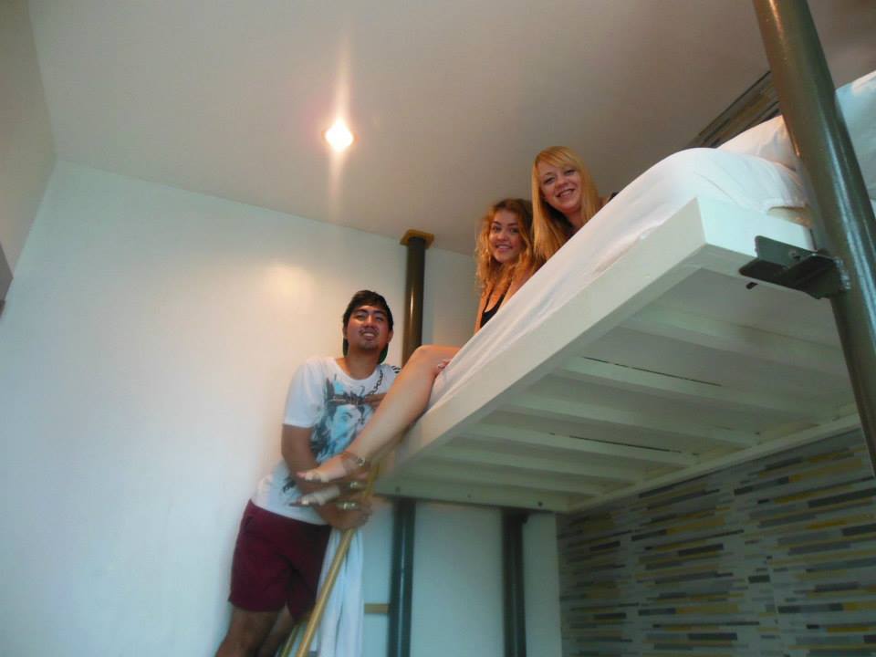 Nasze „podniebne spanie” w hostelu w Manili. Pokój zarezerwowany miesiąc wcześniej, dostaliśmy zniżkę i darmowe śniadanie. Gdybyśmy zarezerwowali na miejscu, za jedzenie musielibyśmy dopłacić.
