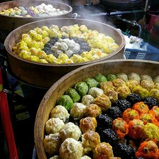 Najciekawiej wyglądały różnego koloru „pierożki” na parze z krewetkami i wieprzowiną – ułożone w wielkim bambusowym koszyku naprawdę robiły wrażenie!
