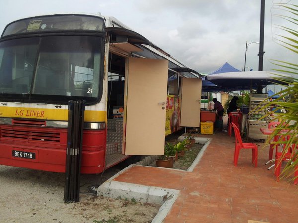 Oprócz busów-pokoi, są też busy z kawiarnią i restauracją! Bardzo fajna stacja wypadowa na weekendowe zwiedzanie Melaki! A zaraz po drugiej stronie drogi znajduje się plaża 🙂