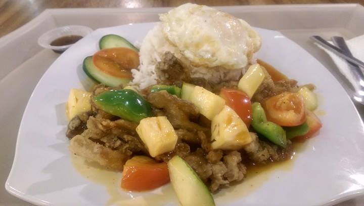 Tego dania chyba nikomu nie trzeba przedstawiać. Kombinacje sosu słodko-kwaśnego spotkać można na całym świecie. A co jest specjalnego w tym konkretnym? Otóż nie ma tu… mięsa. Za białko robią smażone grzyby azjatyckie. Do tego prawie surowy ananas, papryka, warzywa, biały ryż i oczywiście jajko (Malezyjczycy mają obsesję na punkcie dodawania jajka dosłownie do każdego dania).