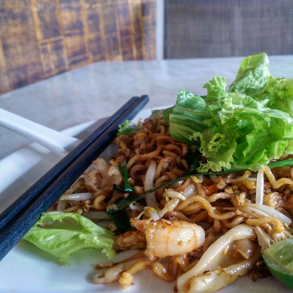Malezyjski klasyk, dostępny 24 godziny na dobę. Maggi goreng, czyli makaron z jajkiem, ciemnym sosem sojowym, kiełkami, szczypiorkiem i garścią krewetek, kalmarów i małży. Wszystko razem prezentuje się niezgorszo, zwłaszcza po polaniu dodatkowo lekko ostrym sosem chilli.