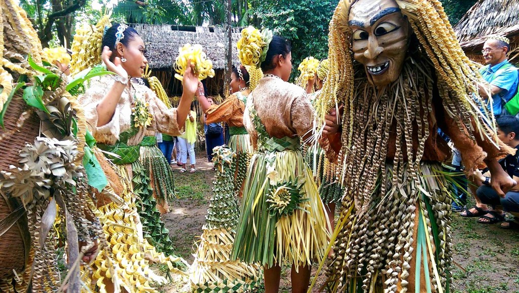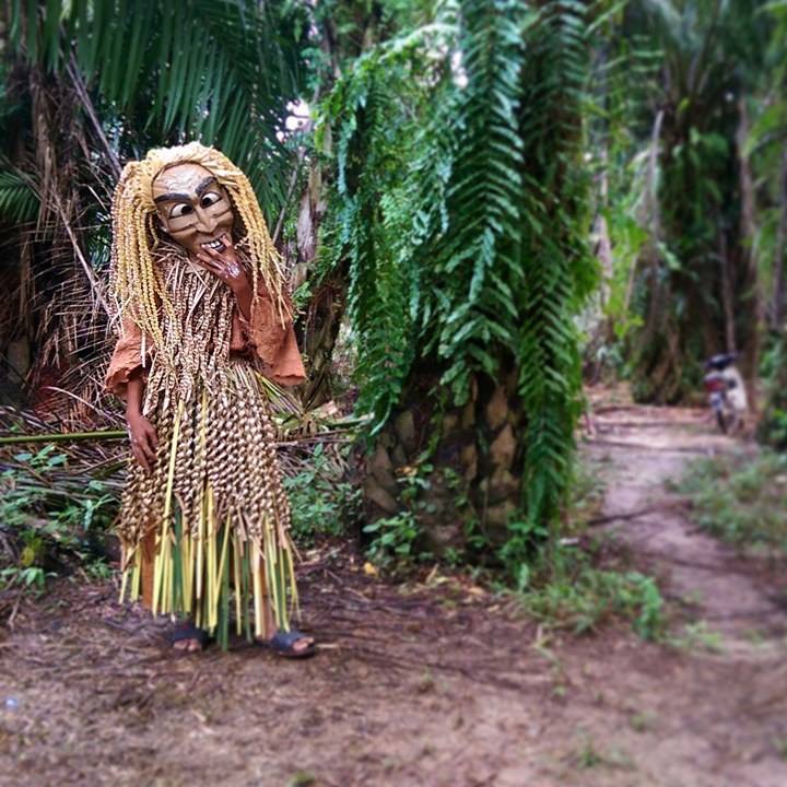 Tradycyjni tancerze ubrani w stroje w liści palmowych i charakterystyczne maski – podobno niektórzy z nich również są „nawiedzani” w transie przez duchy.