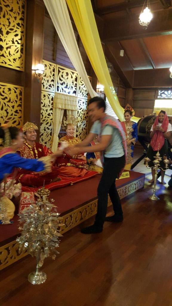 Ślub opisany przeze mnie był oczywiście tylko kulturową prezentacją, a nie prawdziwą ceremonią. Cały pokaz zorganizowany został przez Hang Tuah Centre w Melace, a moim „mężem” był kolega z Filipin, Ken (zobaczcie jak wygląda jego blog!).