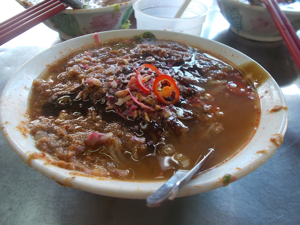 Assam laksa, czyli jakby „oryginał”, to kwaśno-ostra zawiesista zupa oparta na wywarze z tłustej ryby (zwykle makreli) z pastą z tamaryndu. To właśnie tamarynd nadaje zupie ten tradycyjnie „wykręcający twarz” kwaśny smak. Do tego kawałki świeżego ananasa, mięta, sos rybny i wiele innych składników, a na samym dole miski – świeże, ręcznie robione kluski ryżowe.