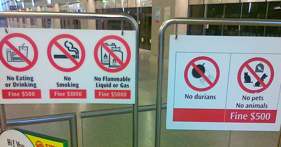 Oprócz zakazu importu i sprzedaży gumy do żucia, w Singapurze obowiązuję też sporo innych zasad, których wysokość bywa szokująca. Pamiętam że podczas mojej pierwszej wycieczki widziałam znaki pokazujące kary za jeżdżenie rowerem poza ścieżką rowerową (bodajże 1,000 dolarów!) czy kary za jedzenie w metrze (500 dolarów). Są też kary za przechodzenie przez jezdnię poza wyznaczonymi do tego miejscami i wiele innych. Niewiele z nich jednak zyskało tak międzynarodową sławę jak prawo dotyczące gumy do żucia!